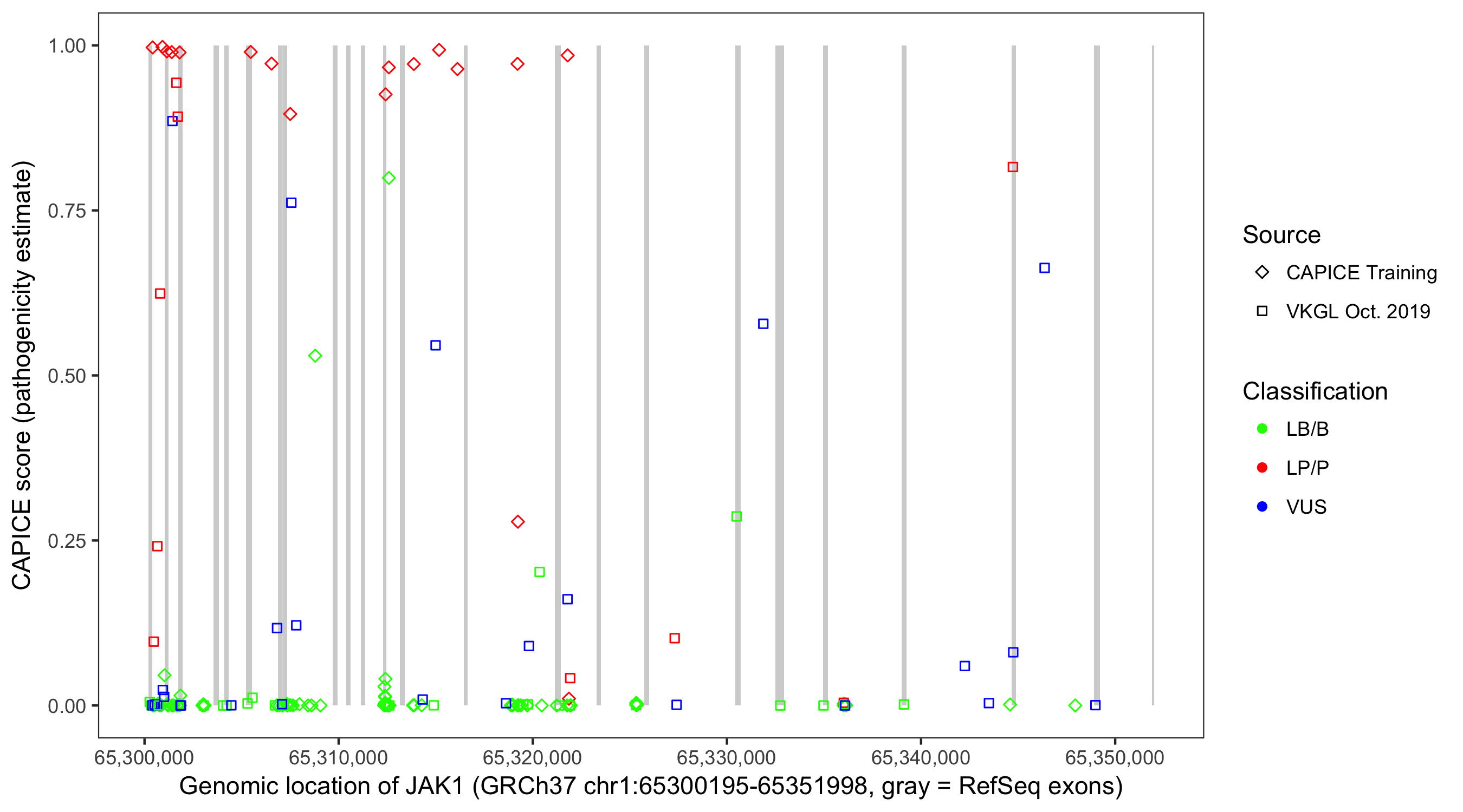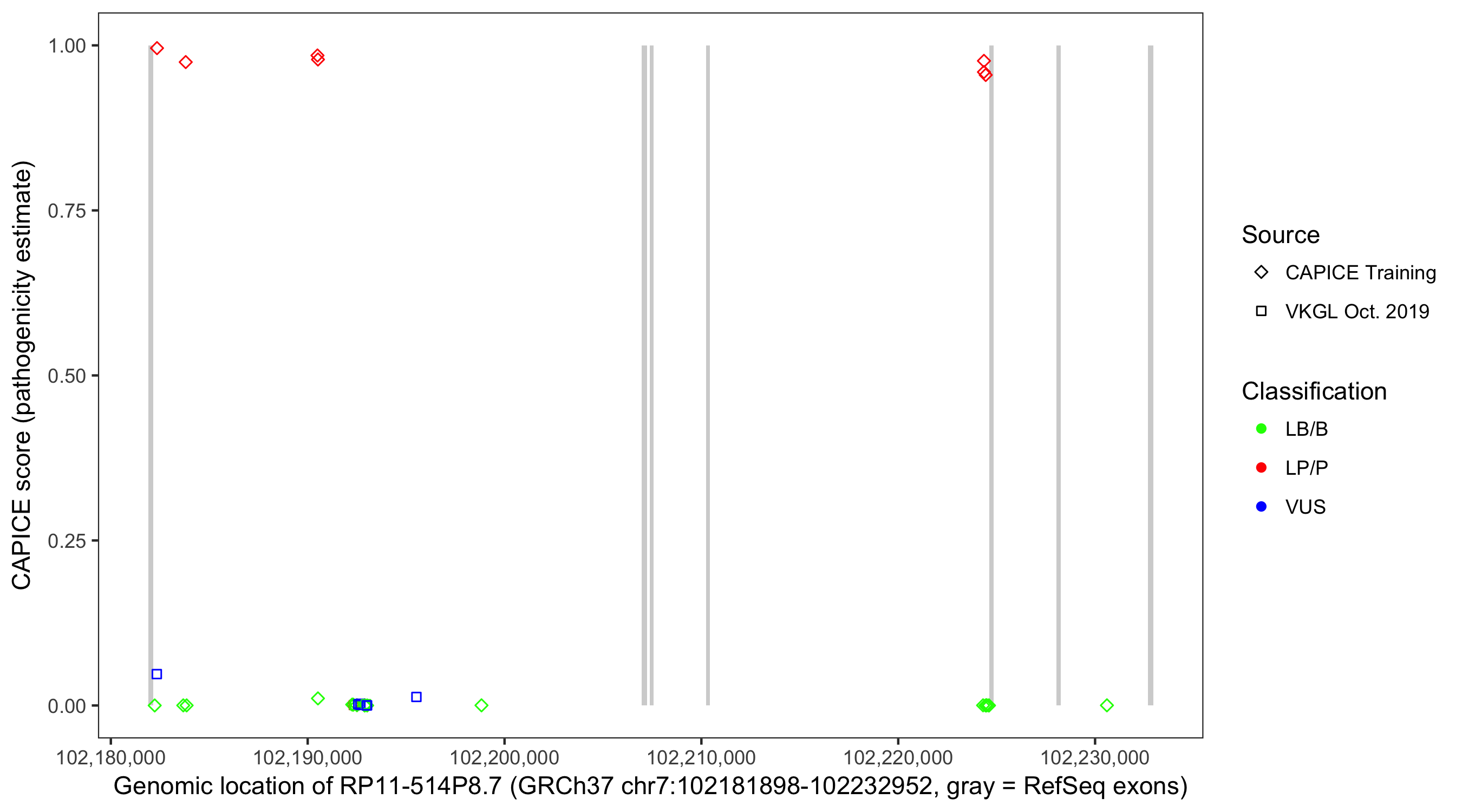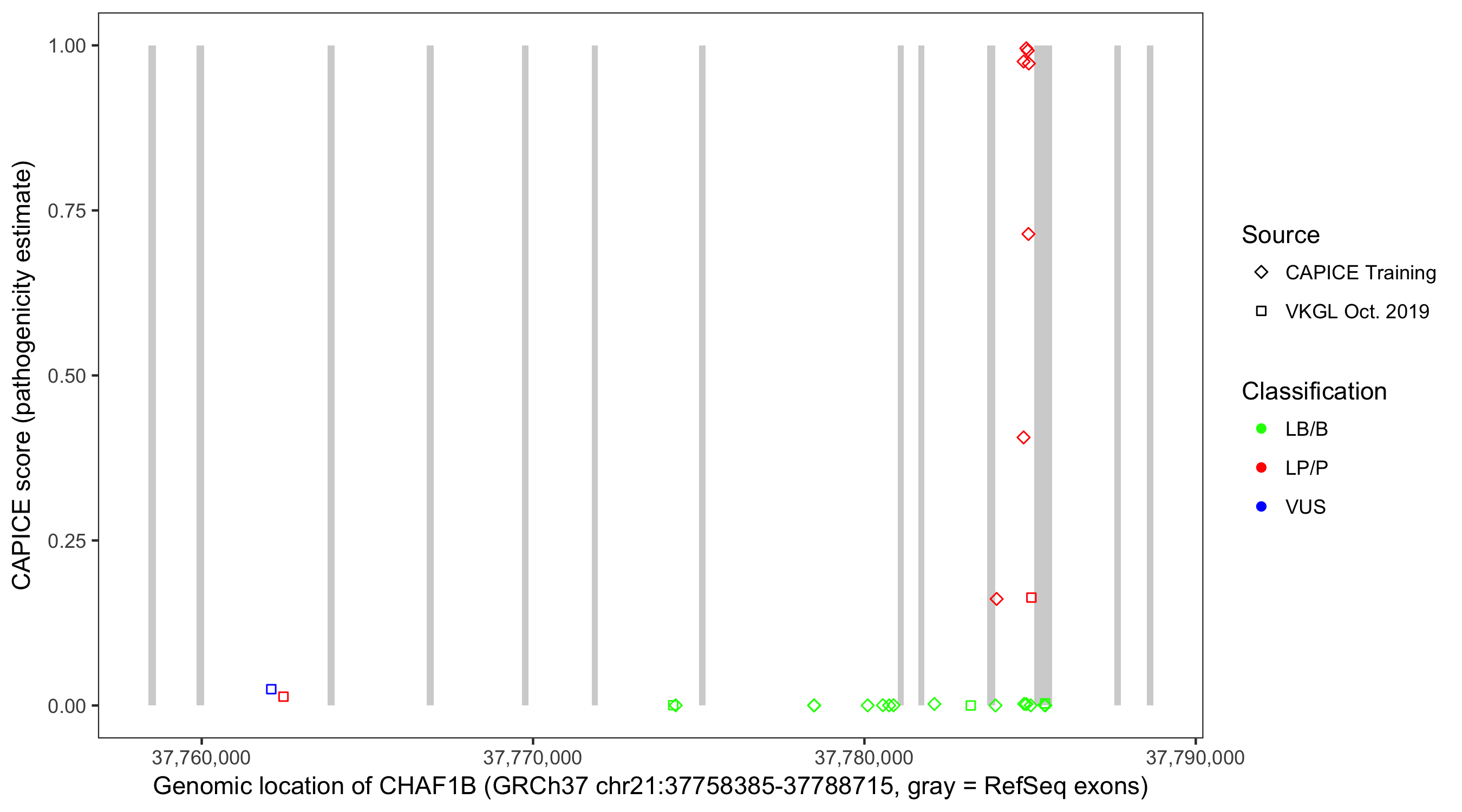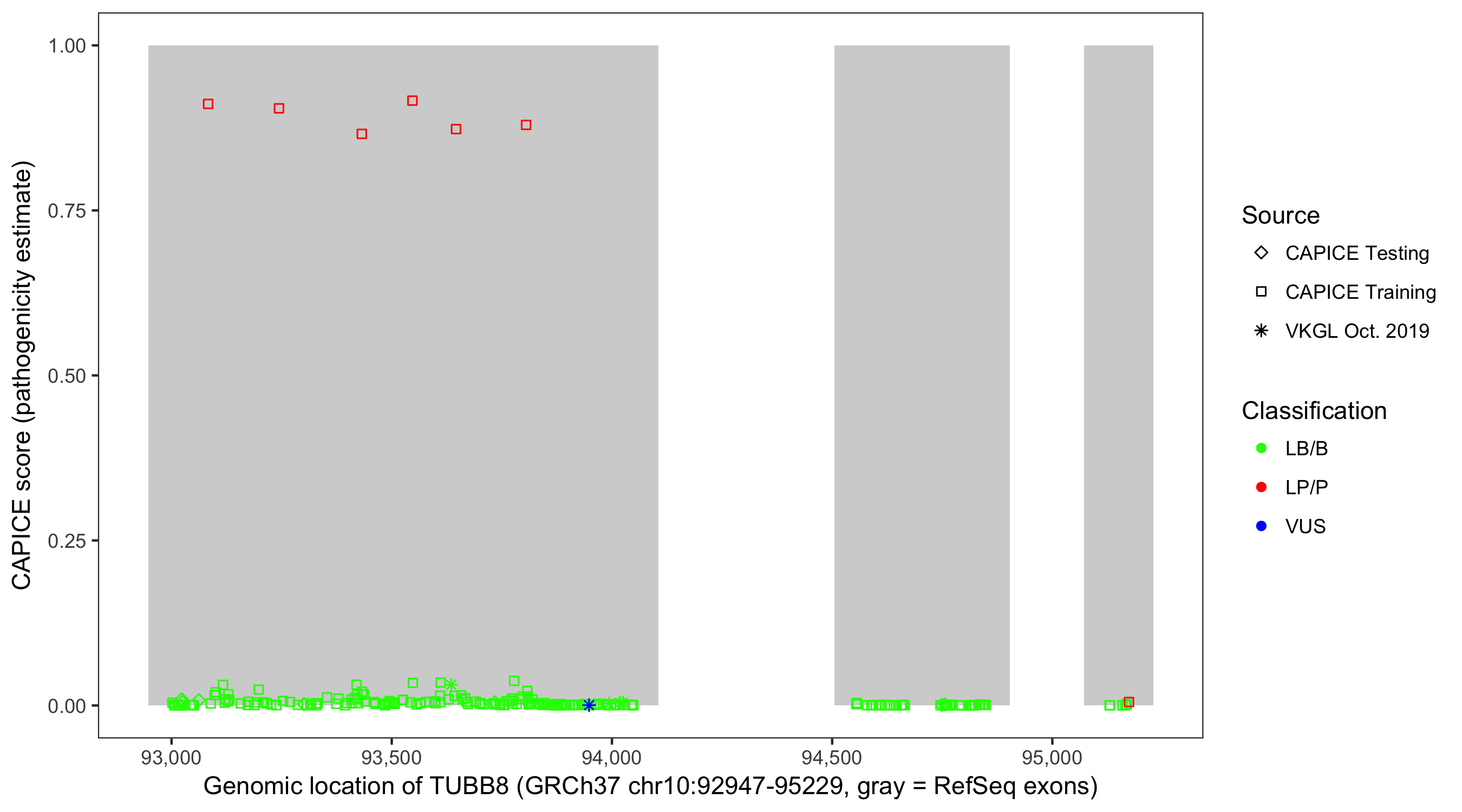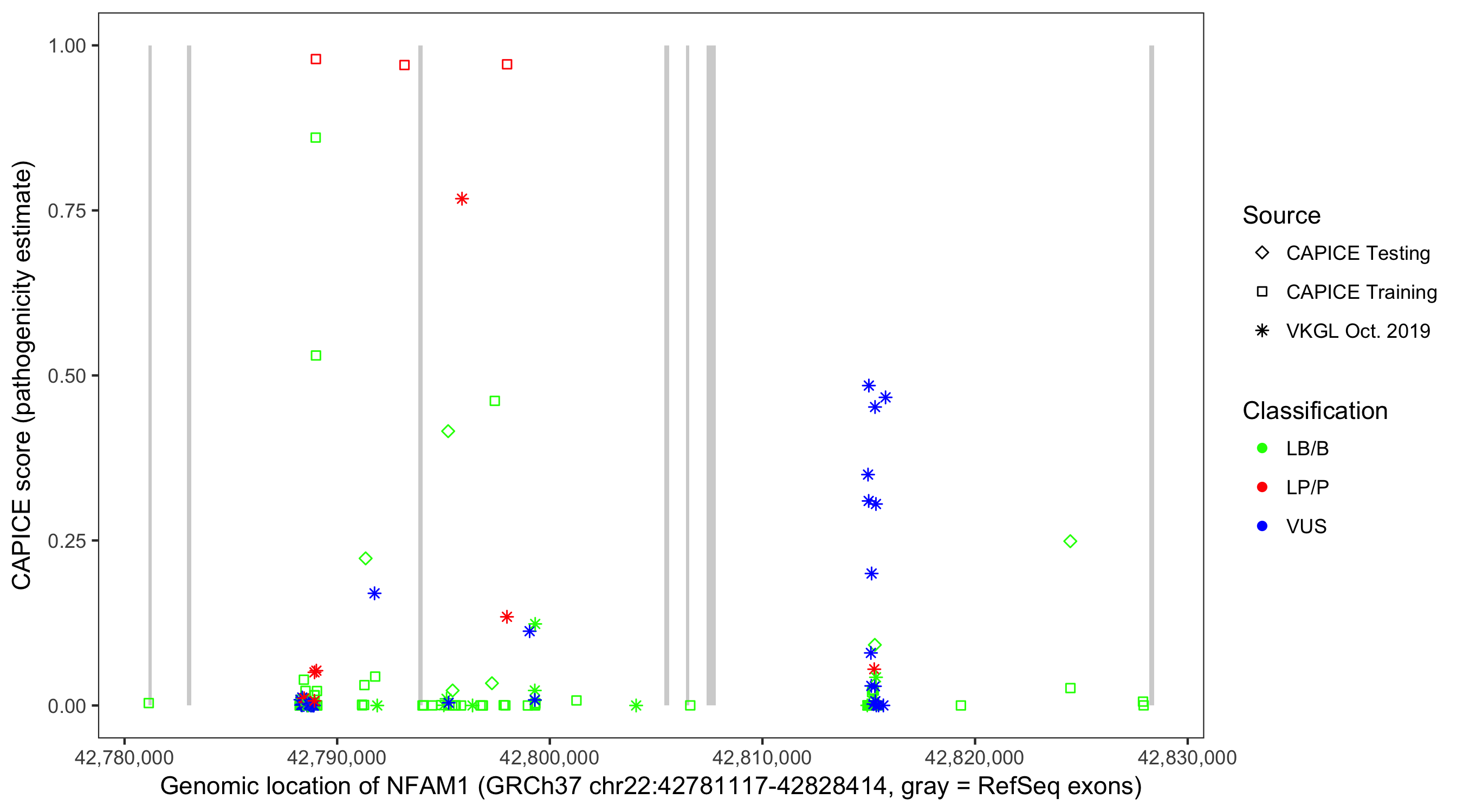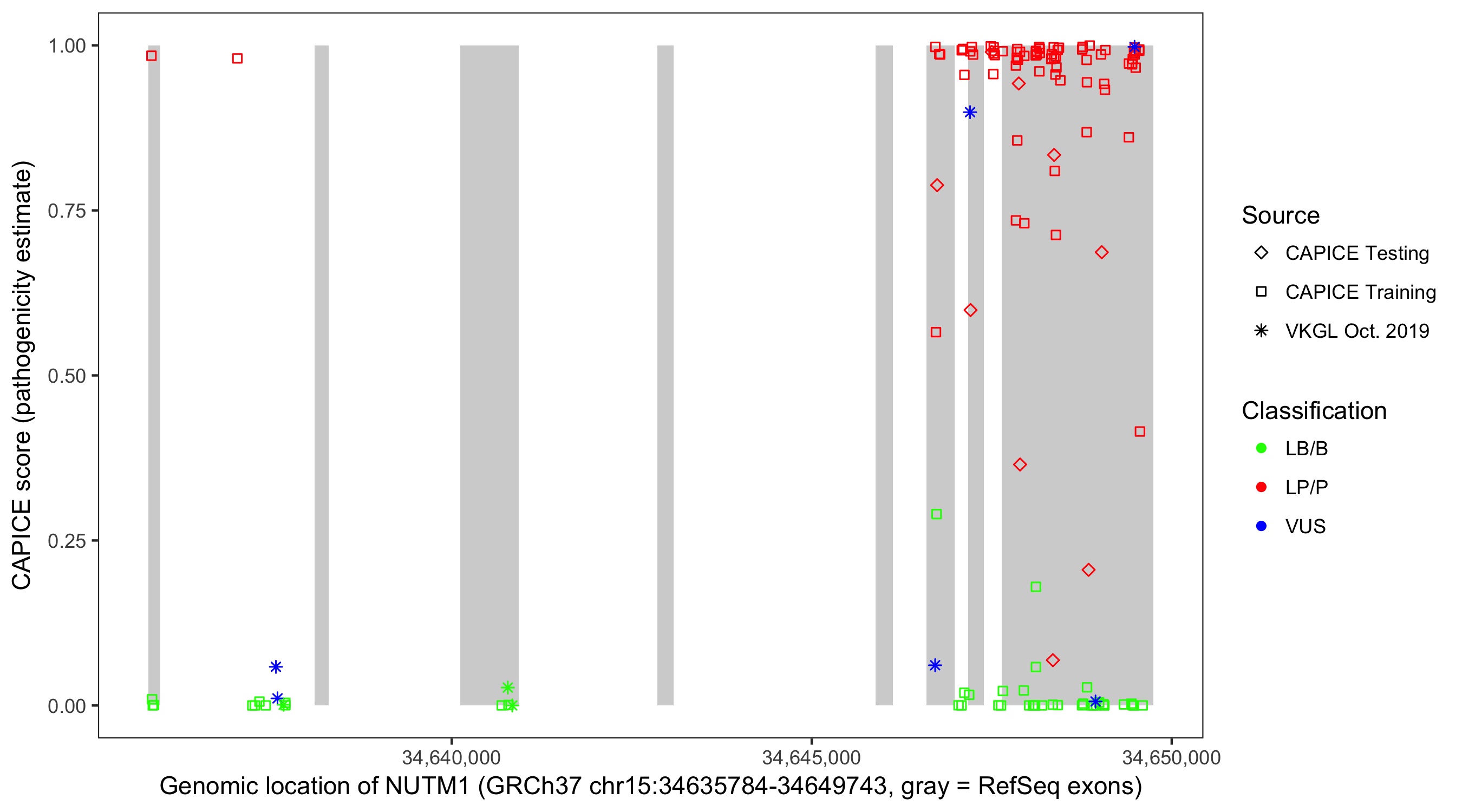 Shown are CAPICE train/test variants plus VKGL Oct 2019.