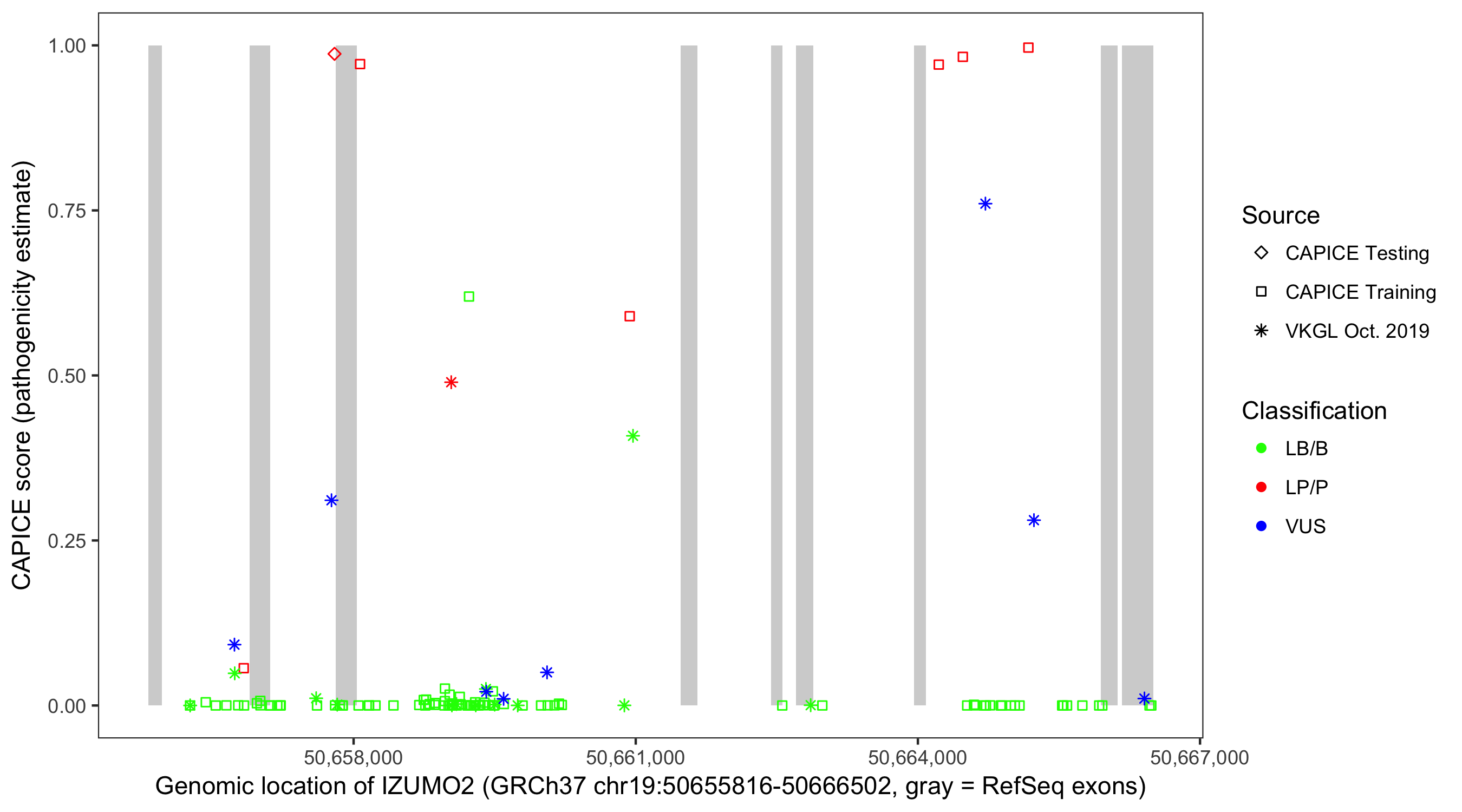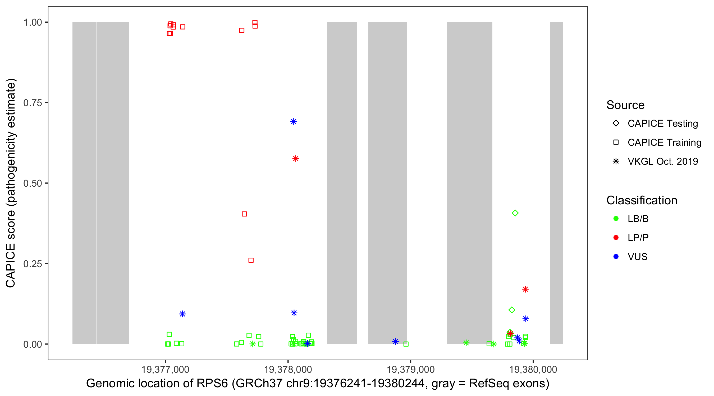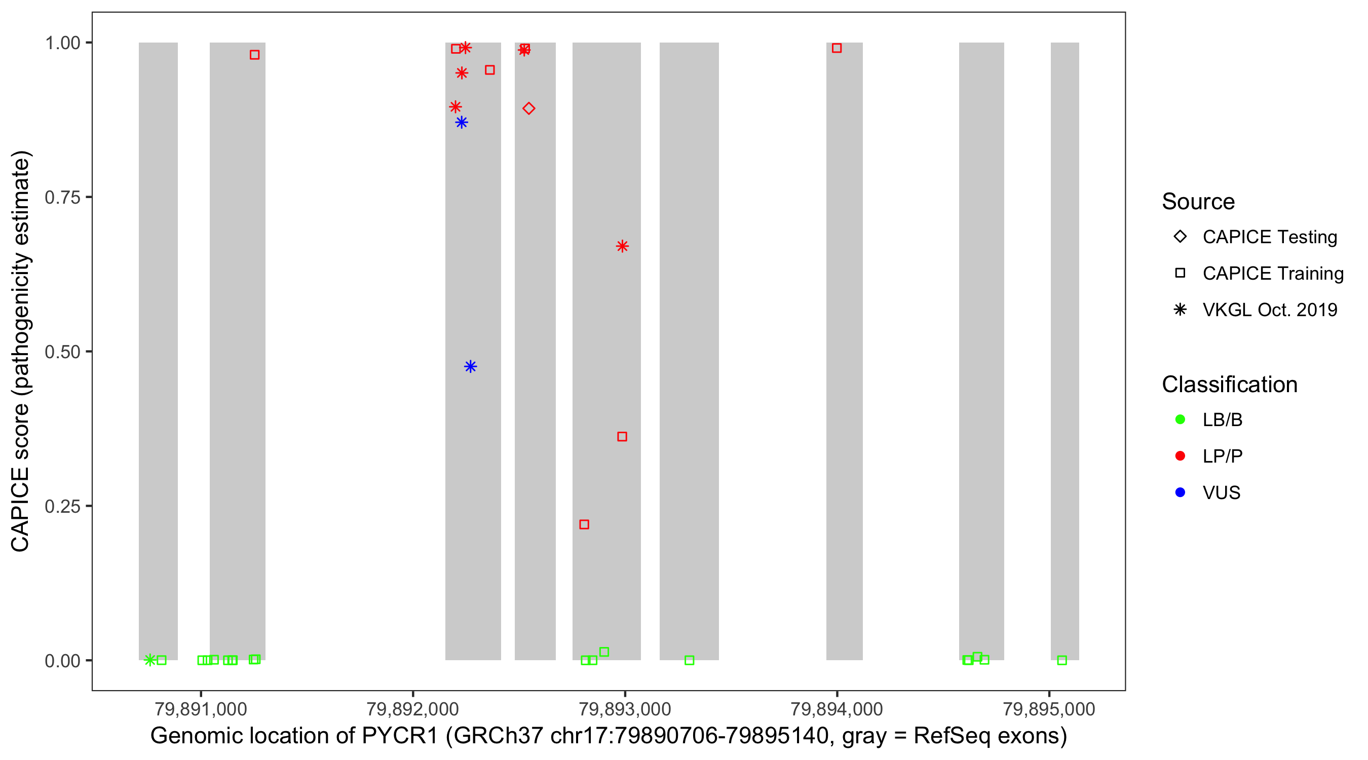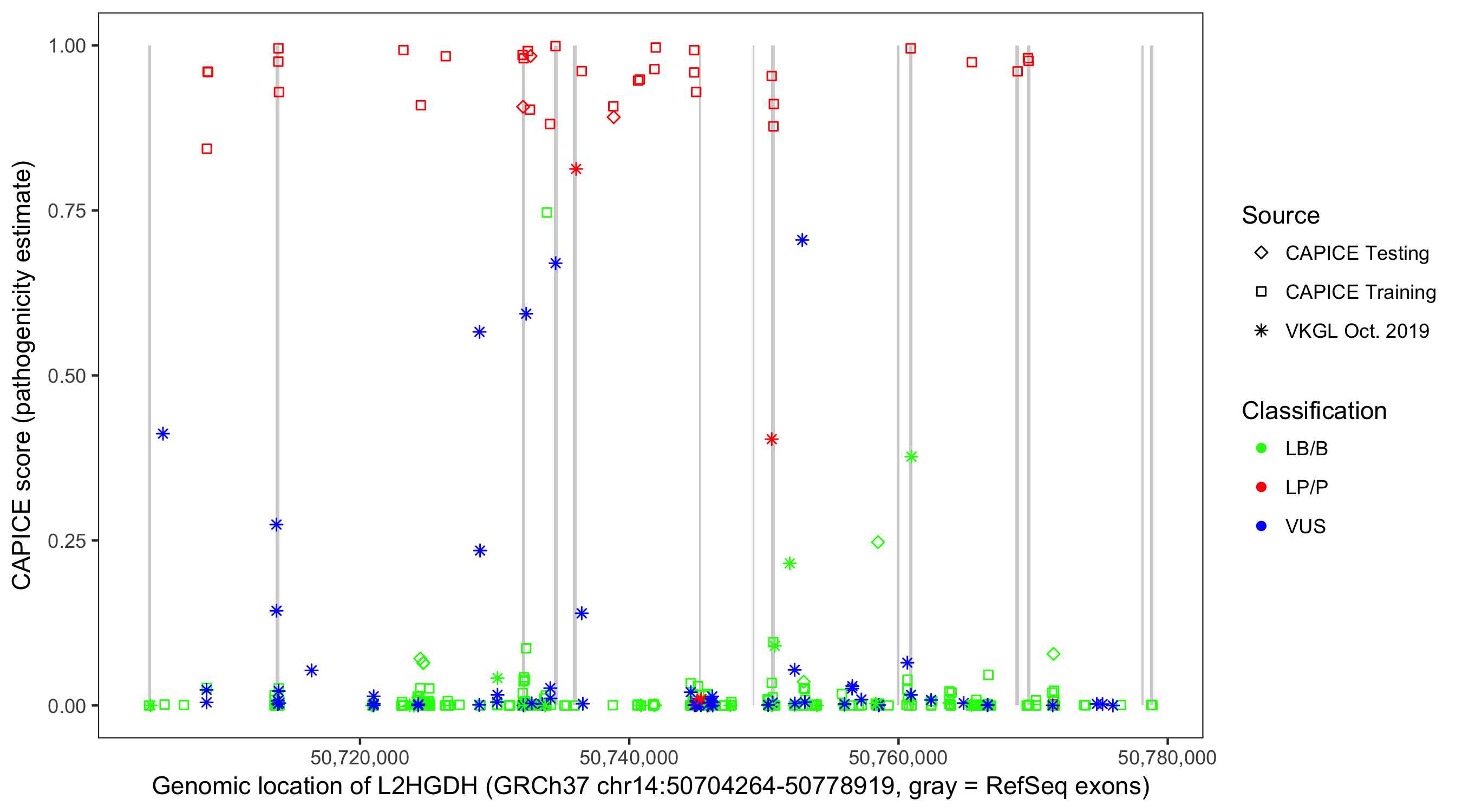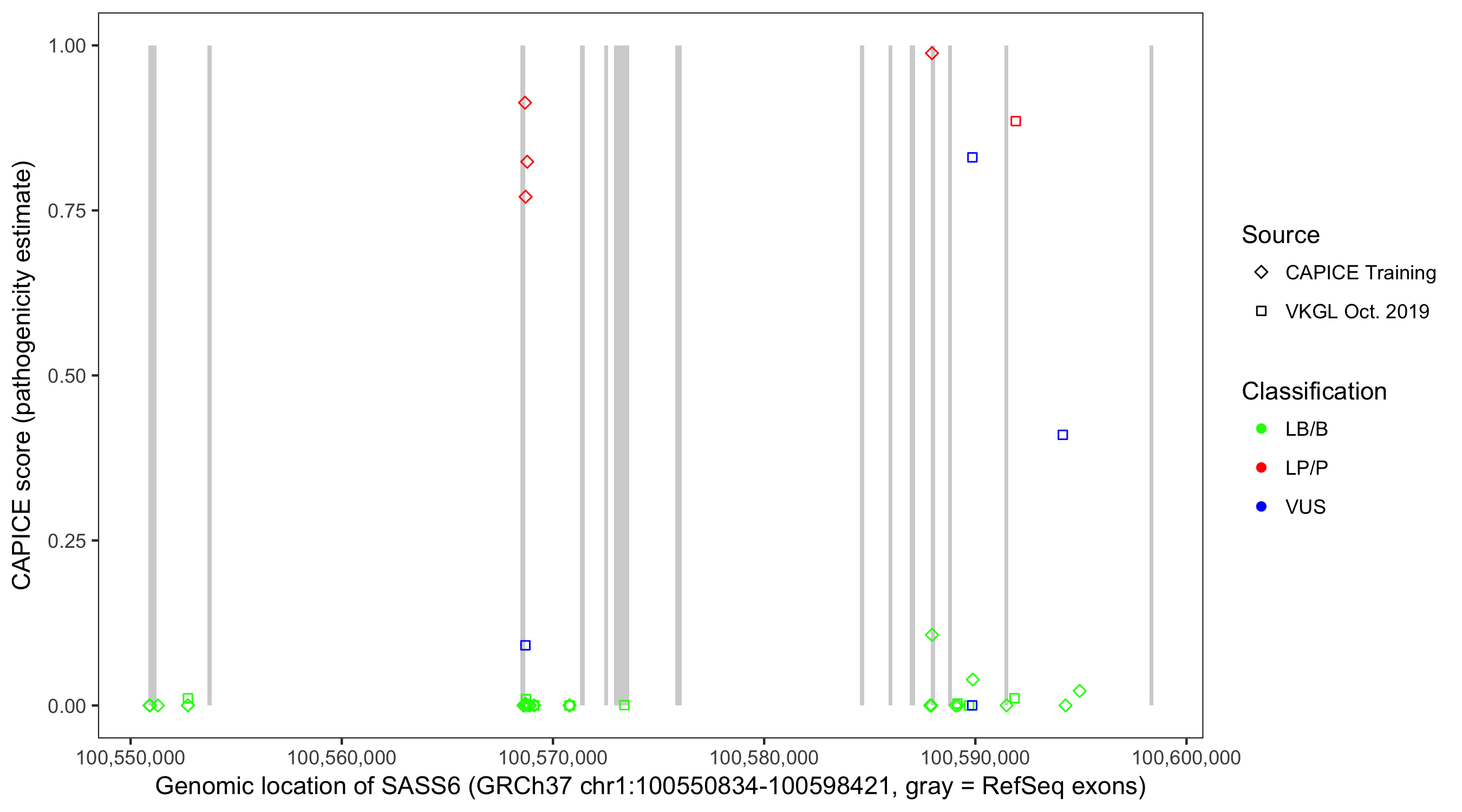 Shown are CAPICE train/test variants plus VKGL Oct 2019.
