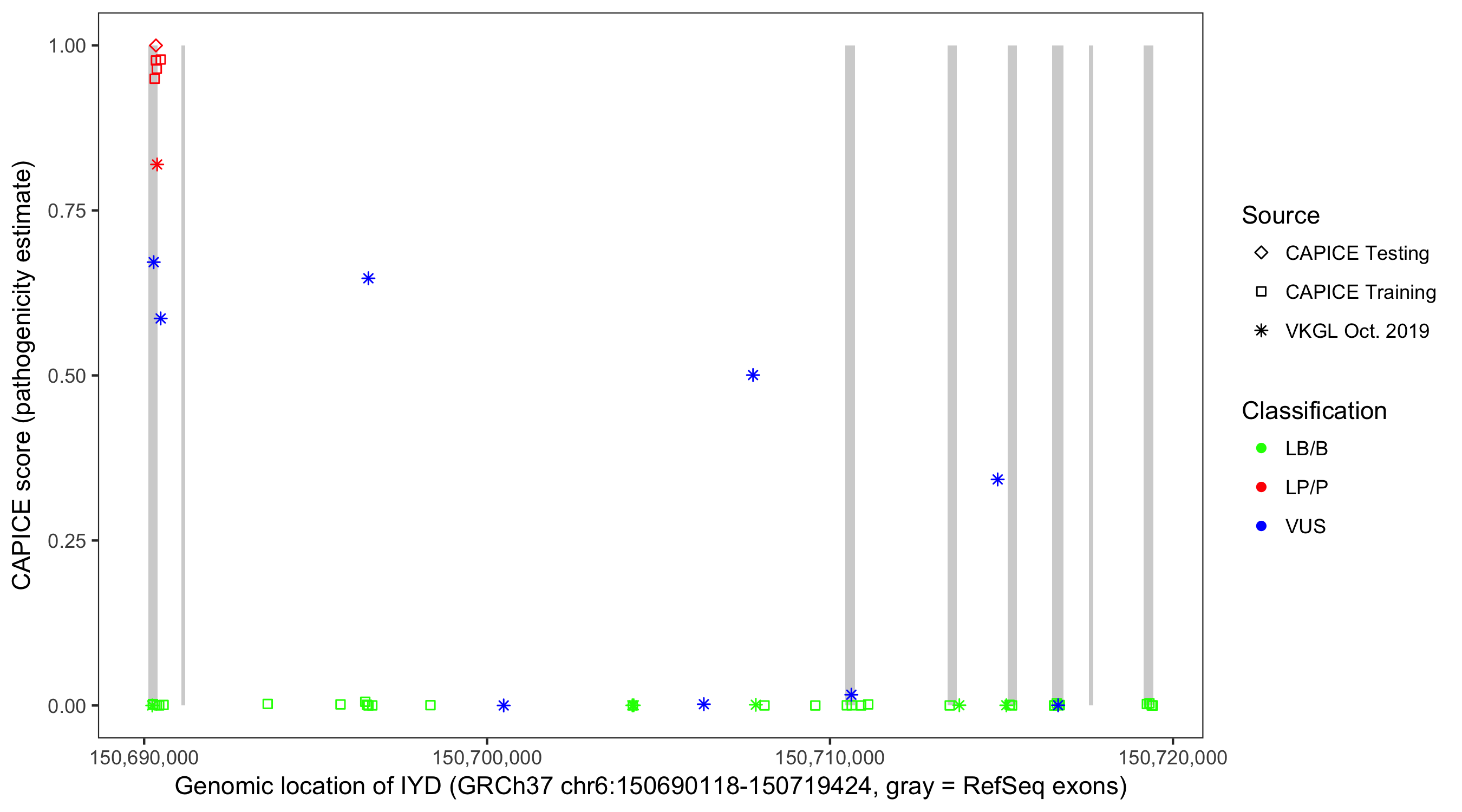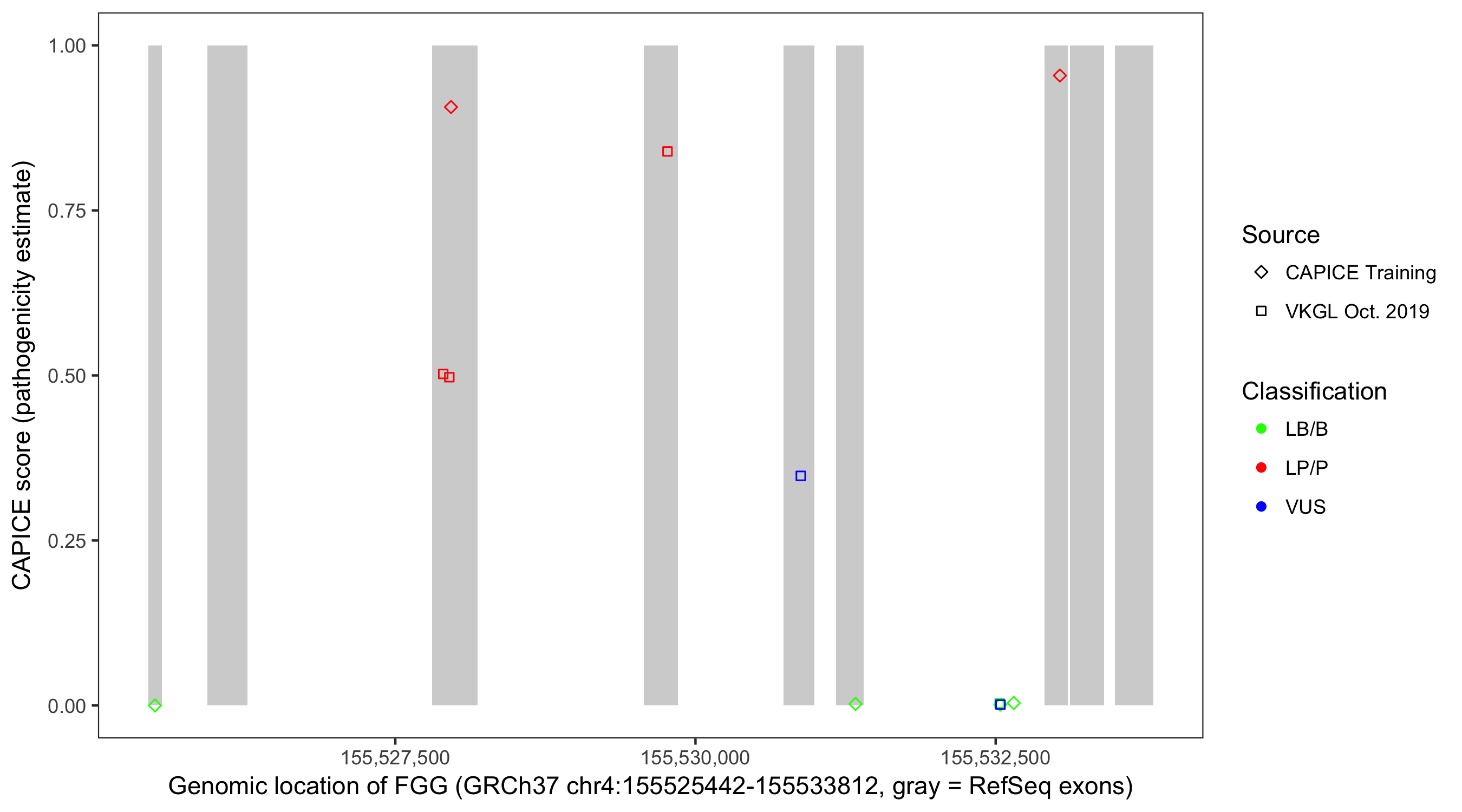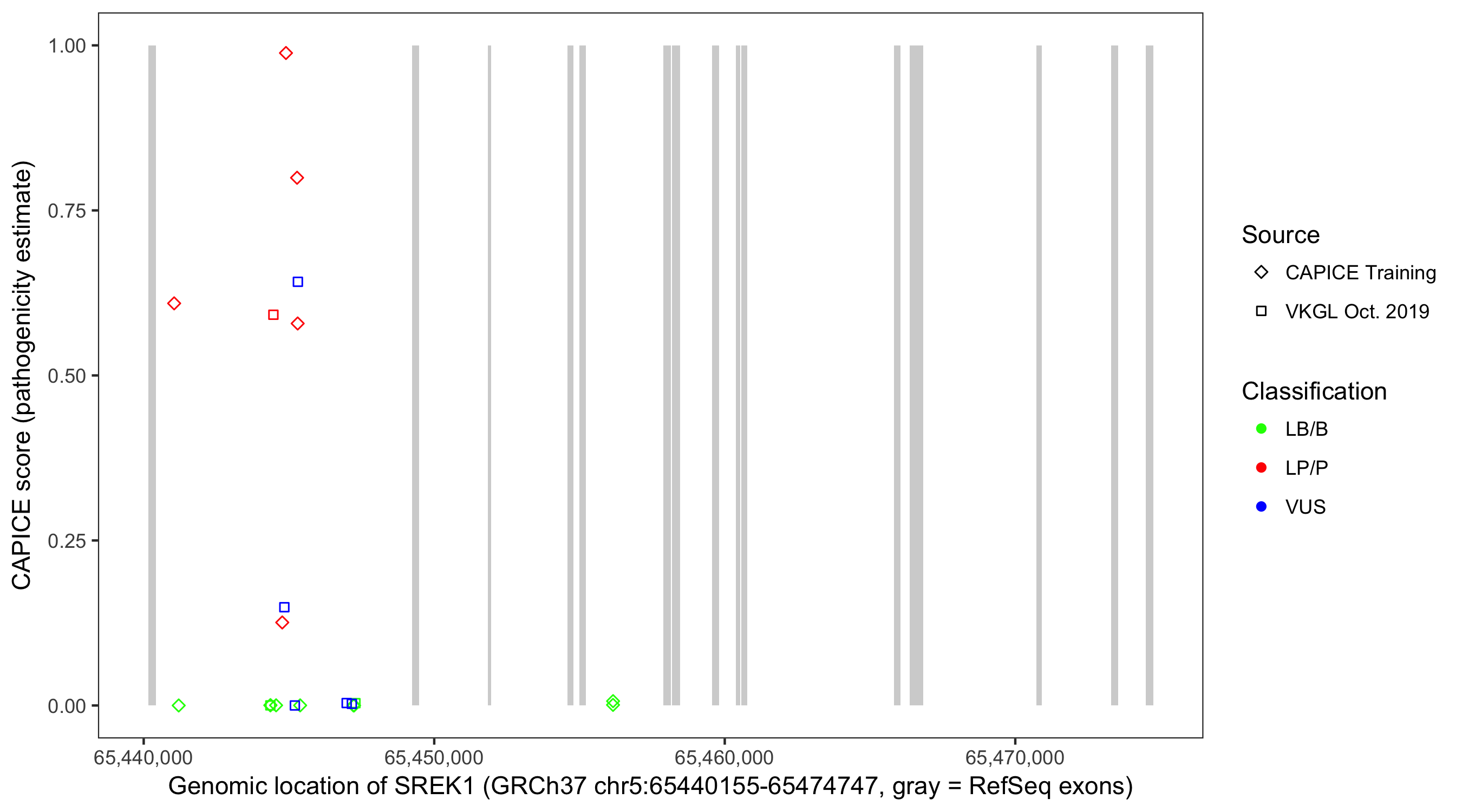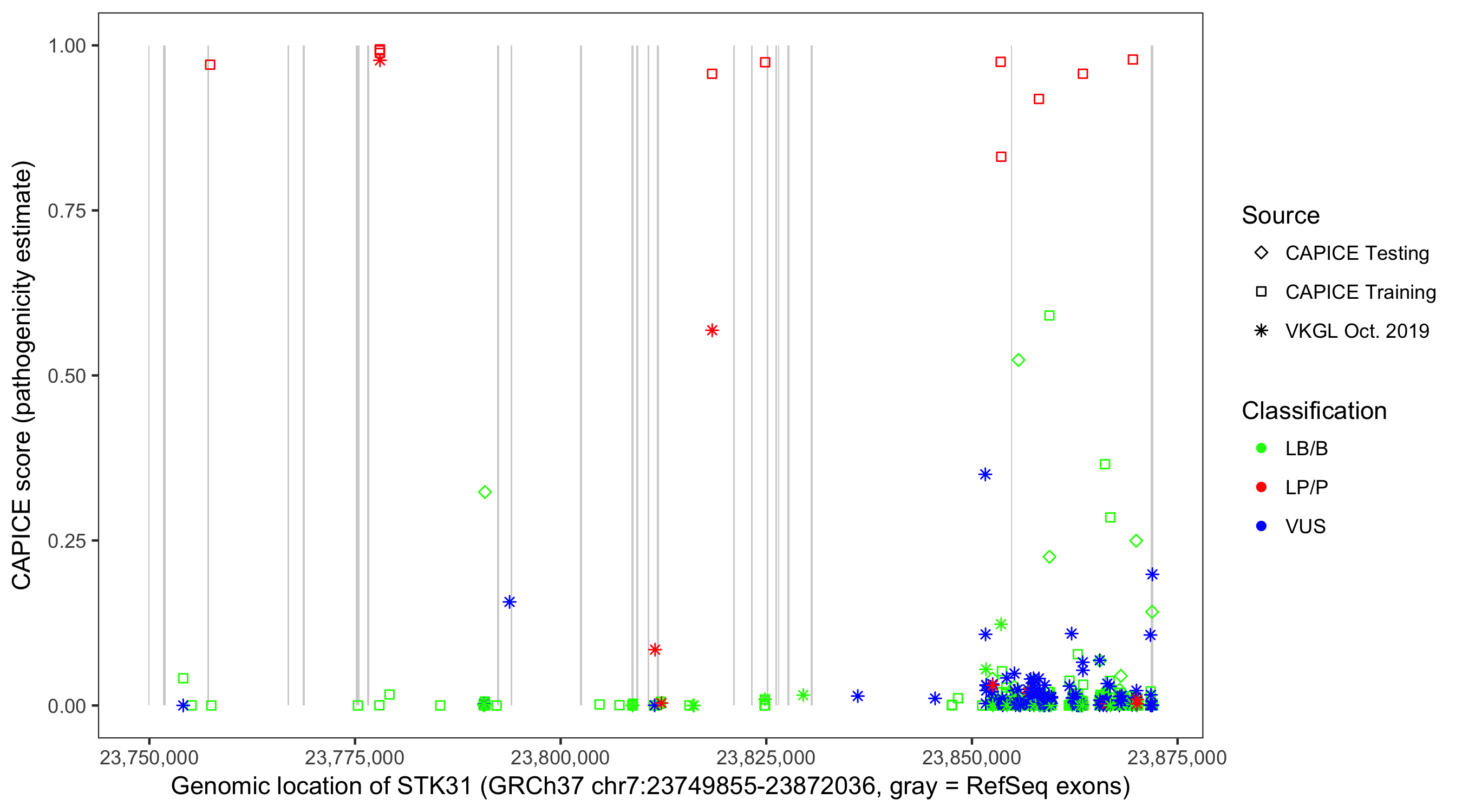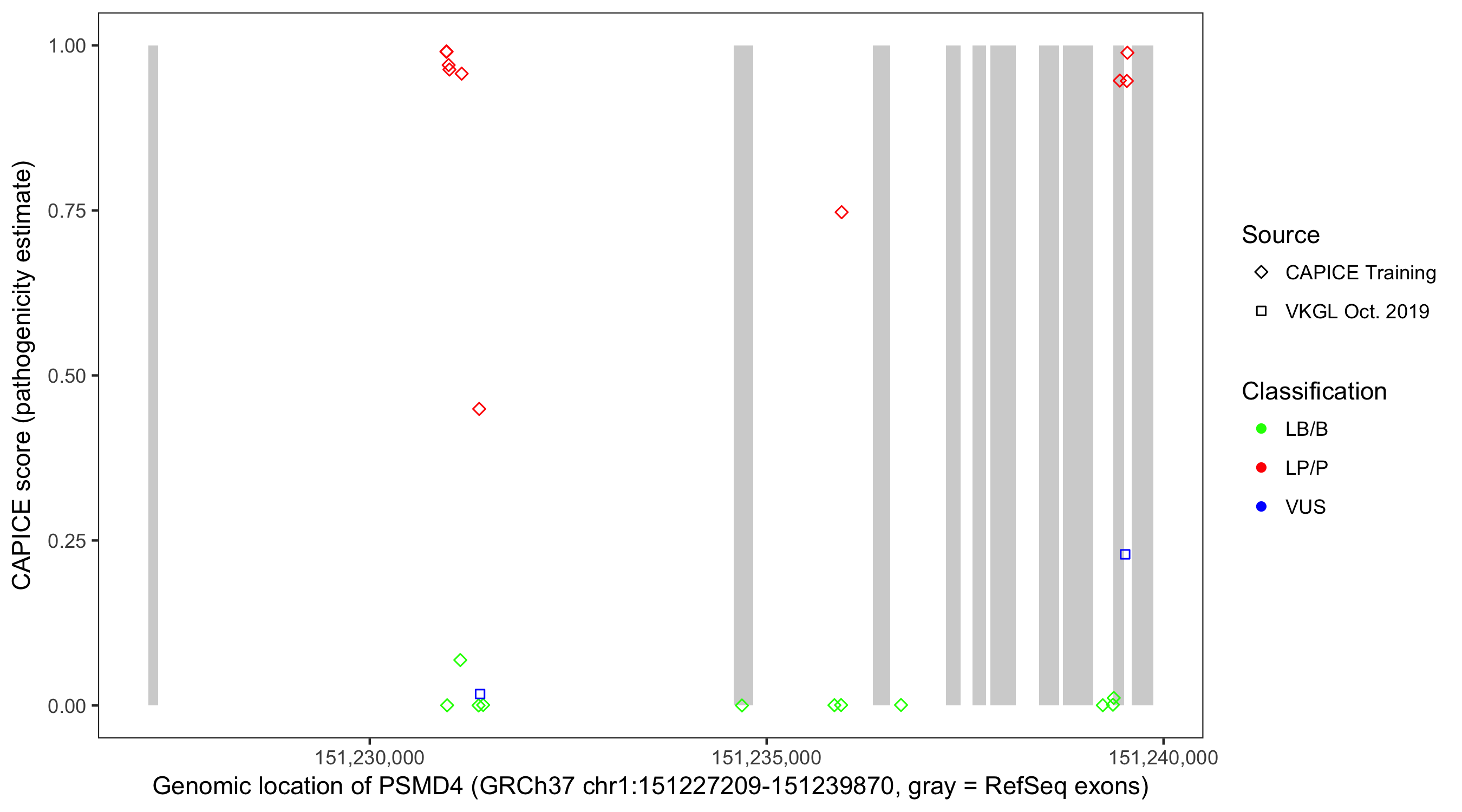 Shown are CAPICE train/test variants plus VKGL Oct 2019.