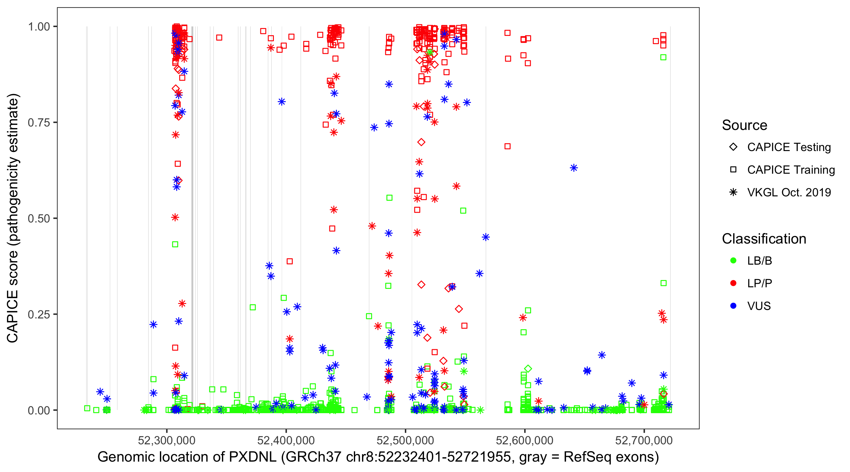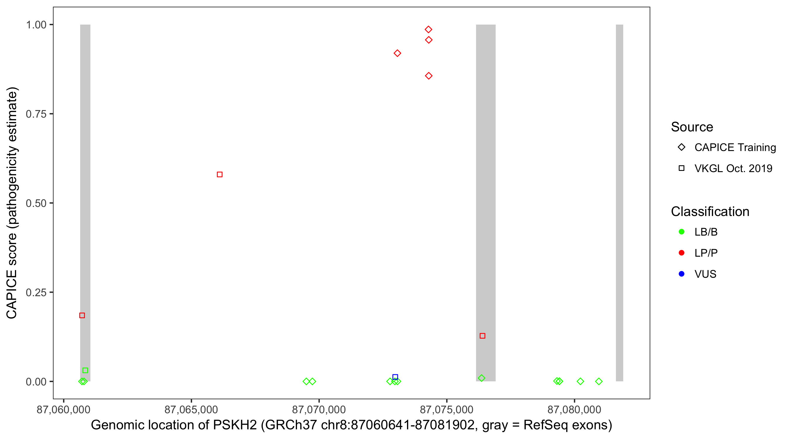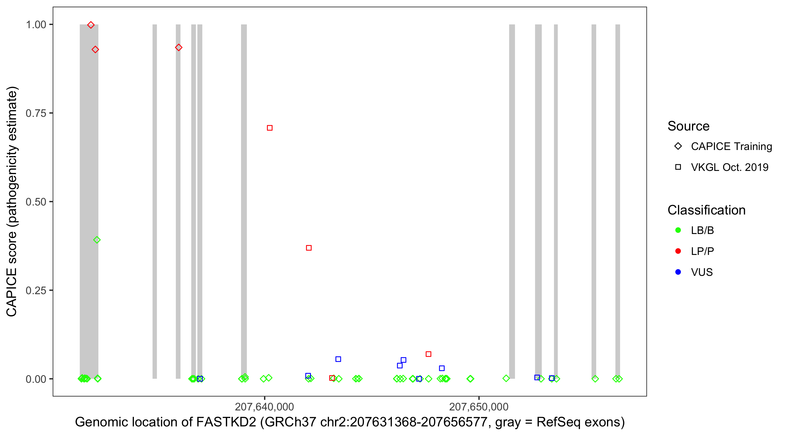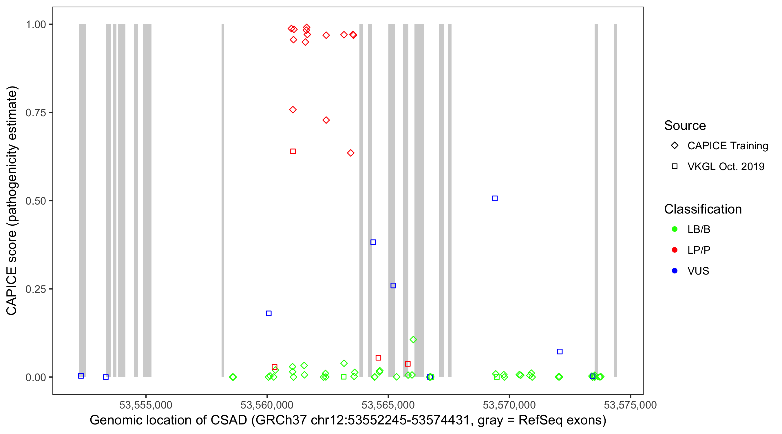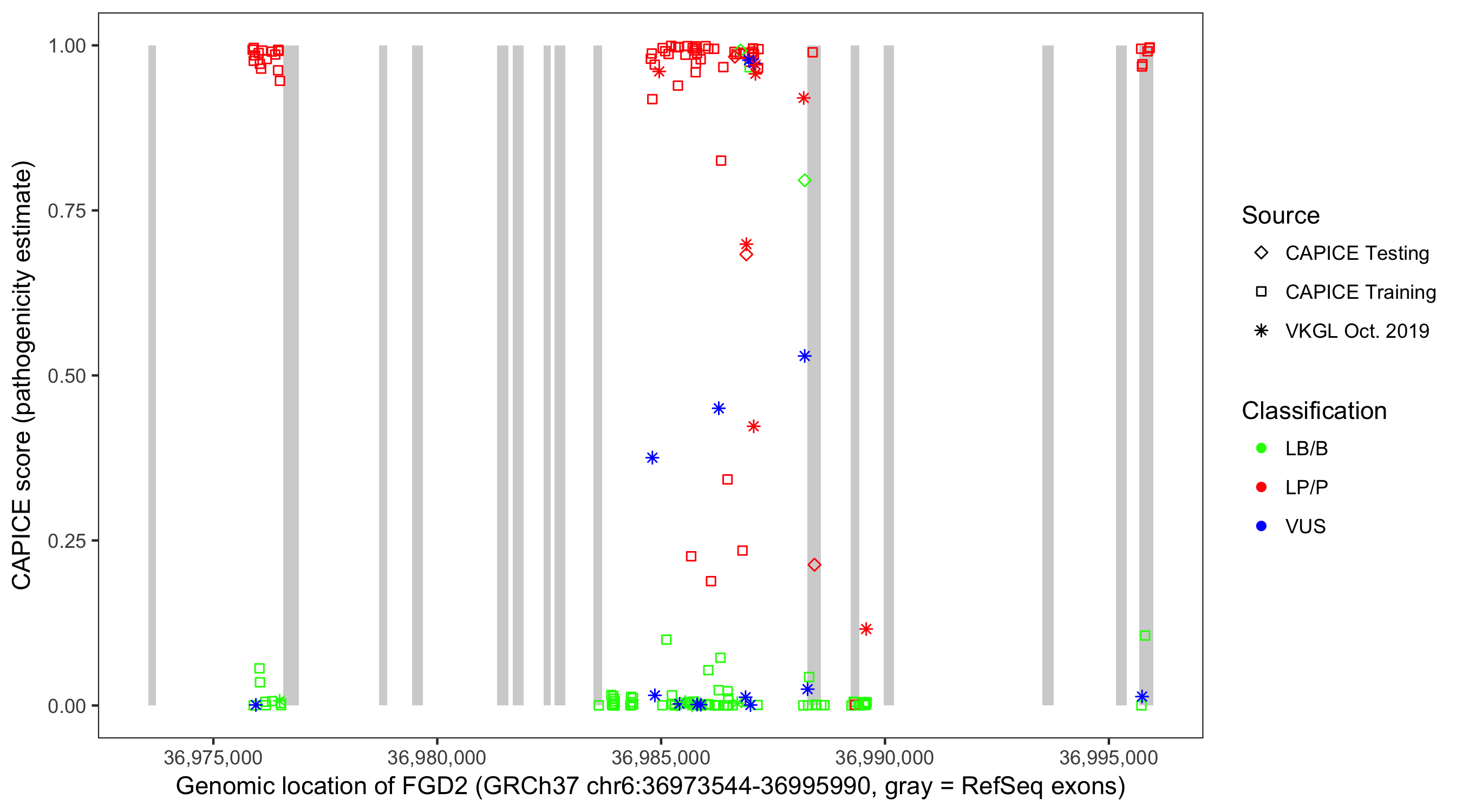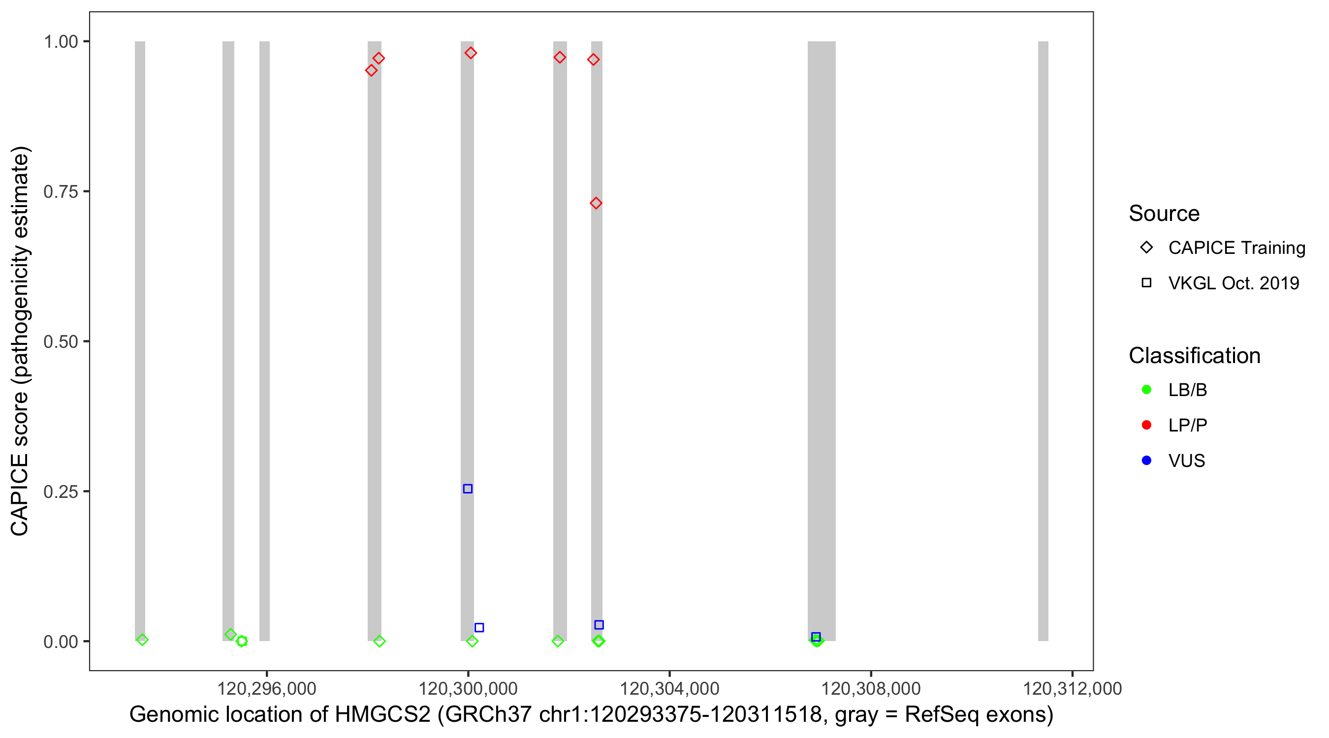 Shown are CAPICE train/test variants plus VKGL Oct 2019.