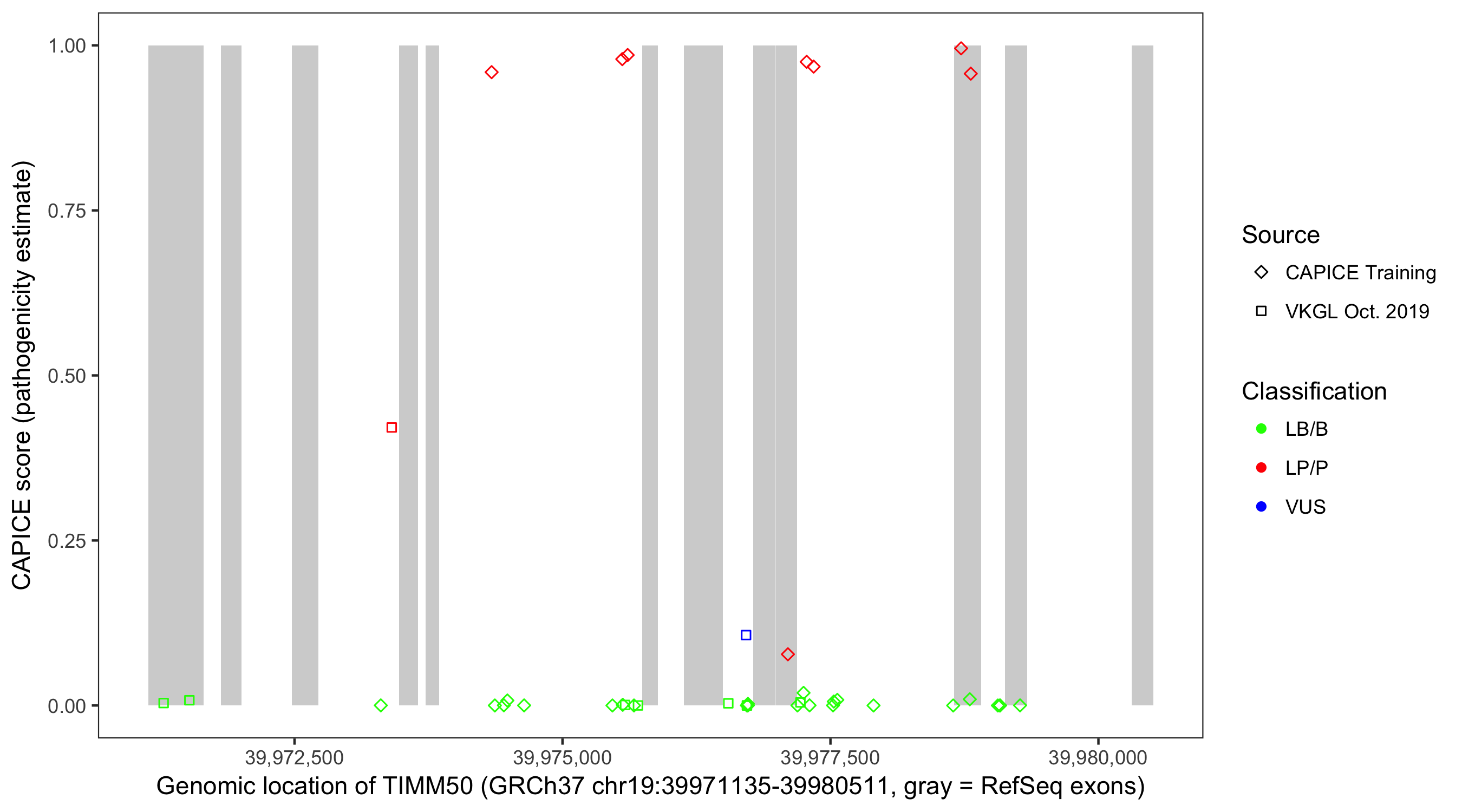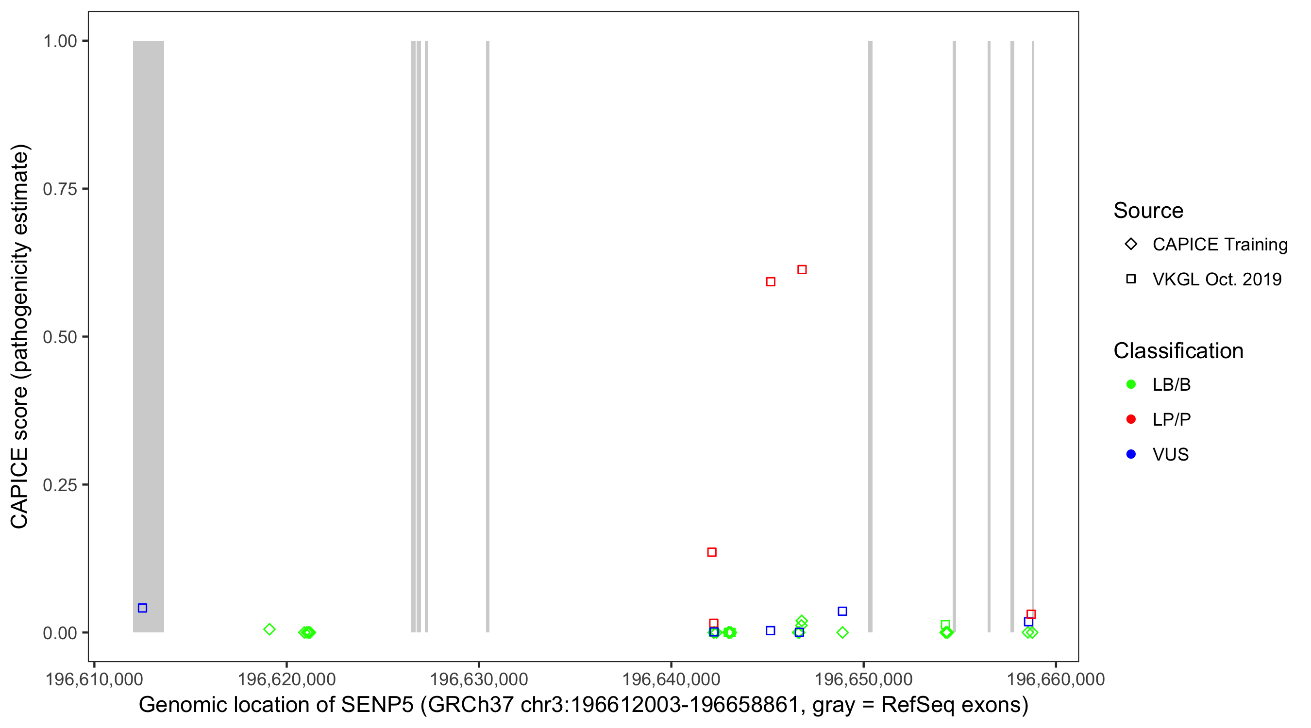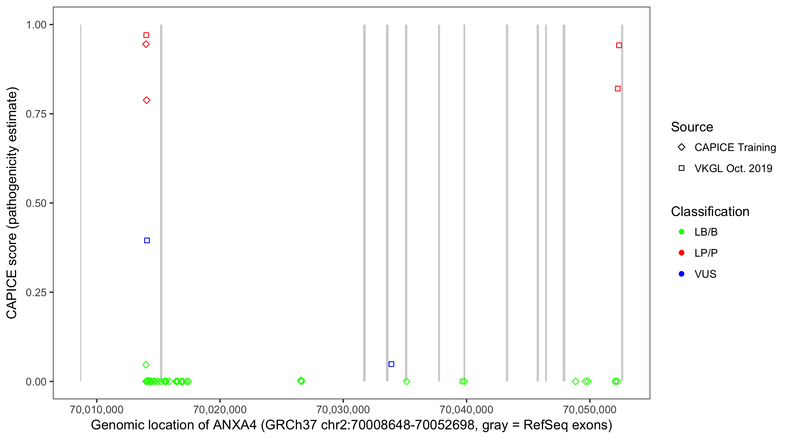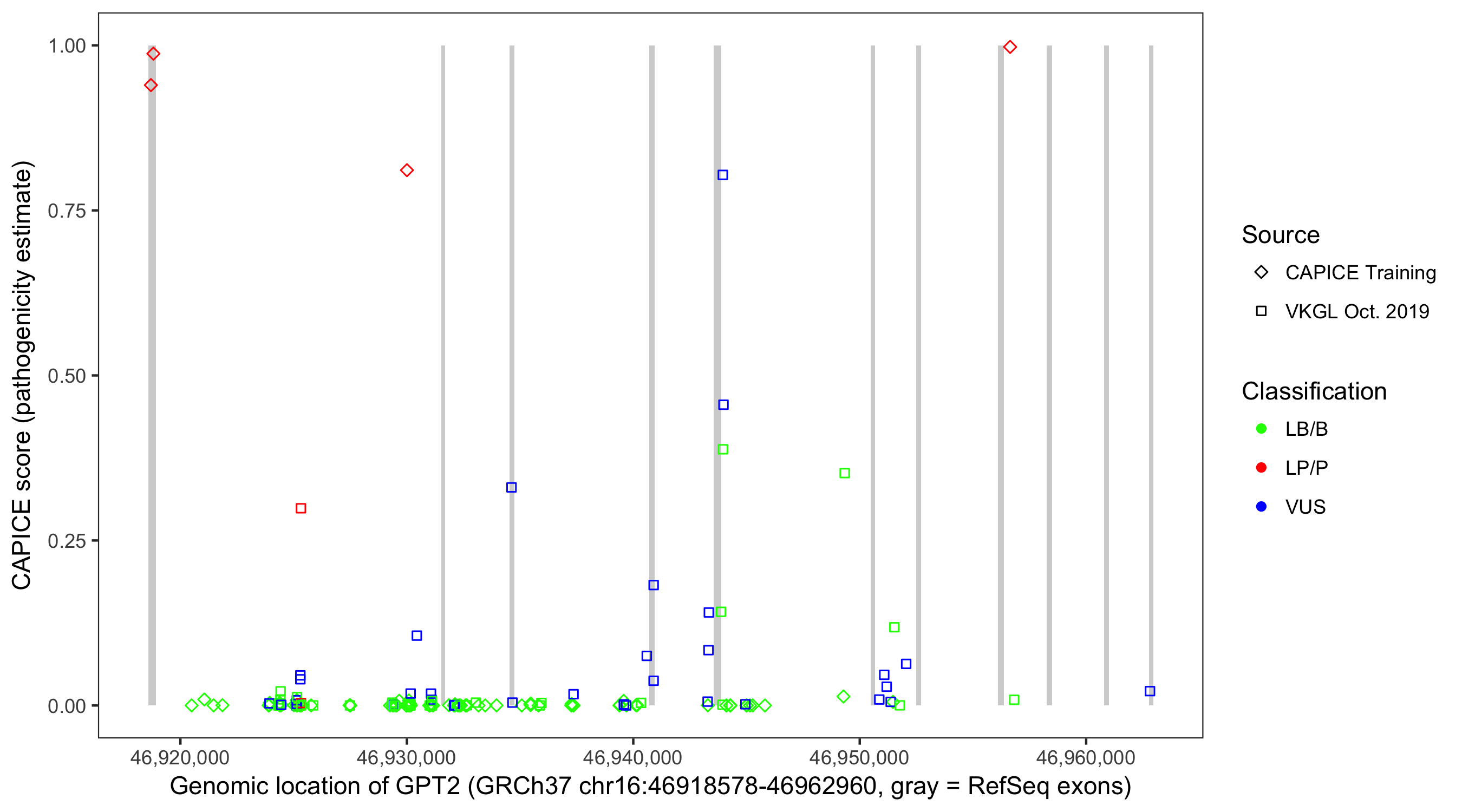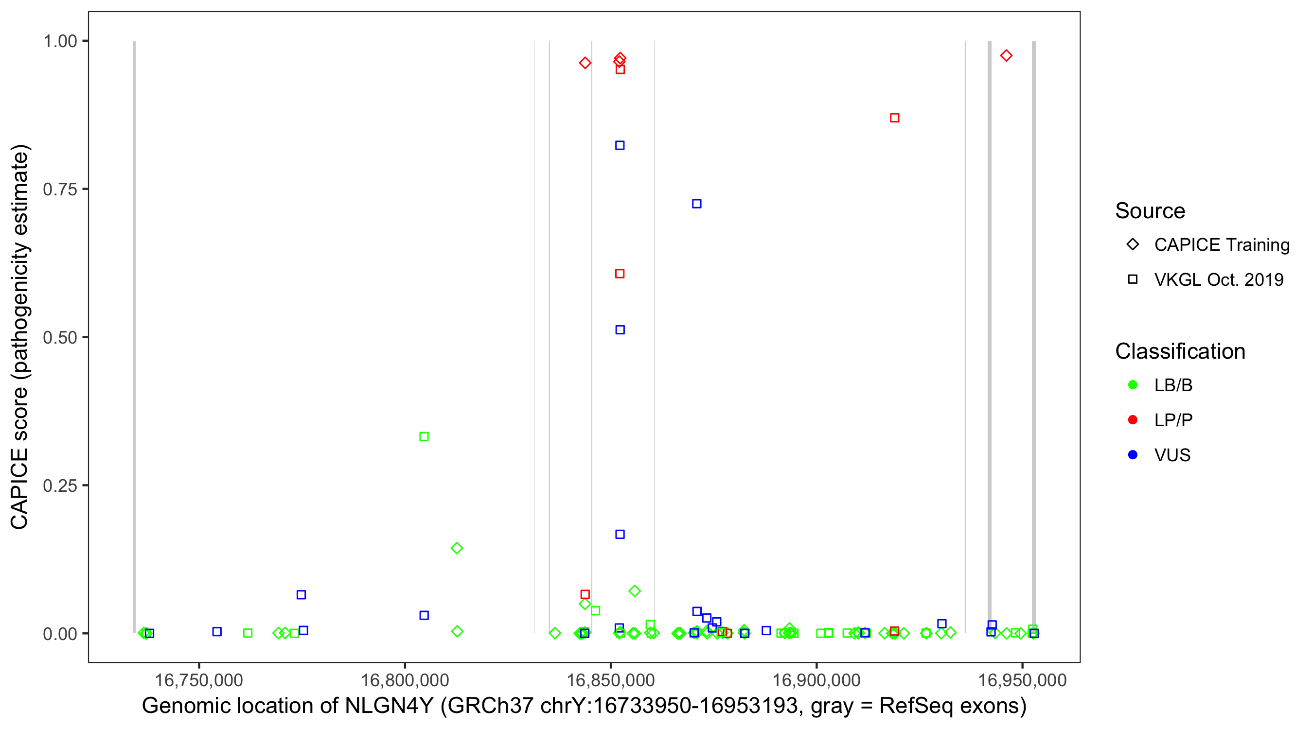 Shown are CAPICE train/test variants plus VKGL Oct 2019.