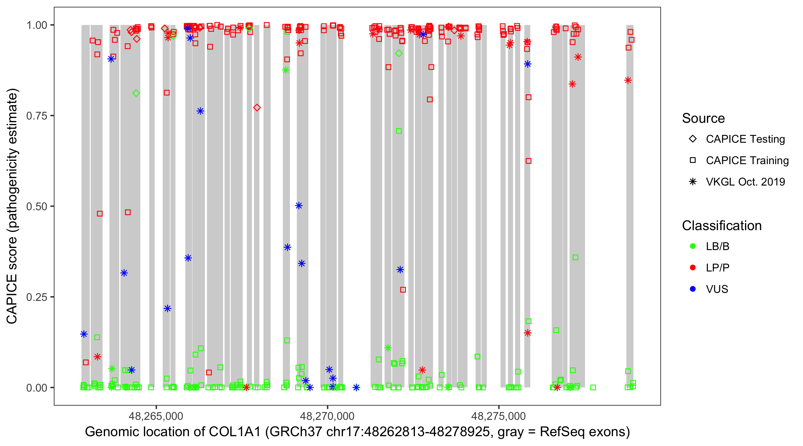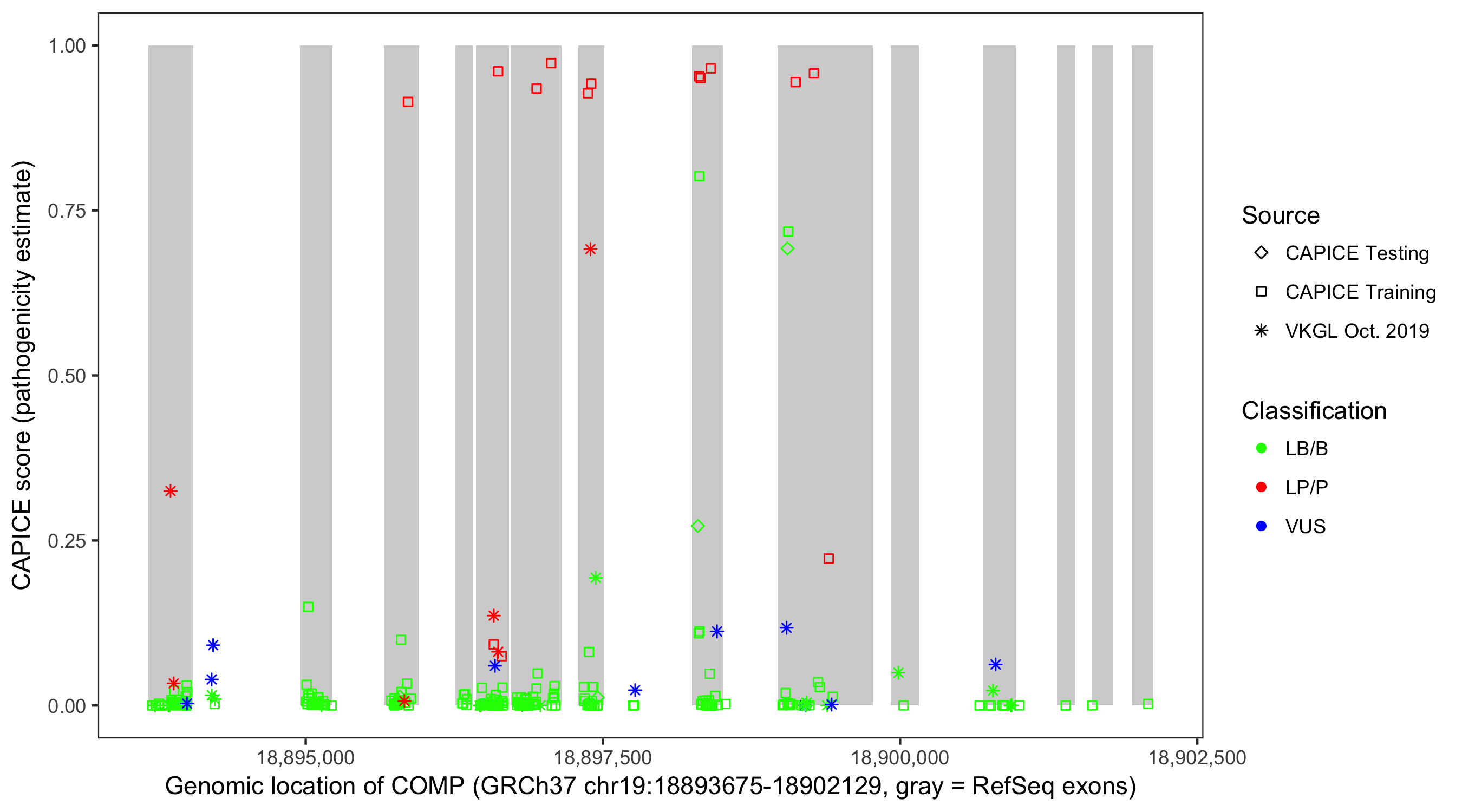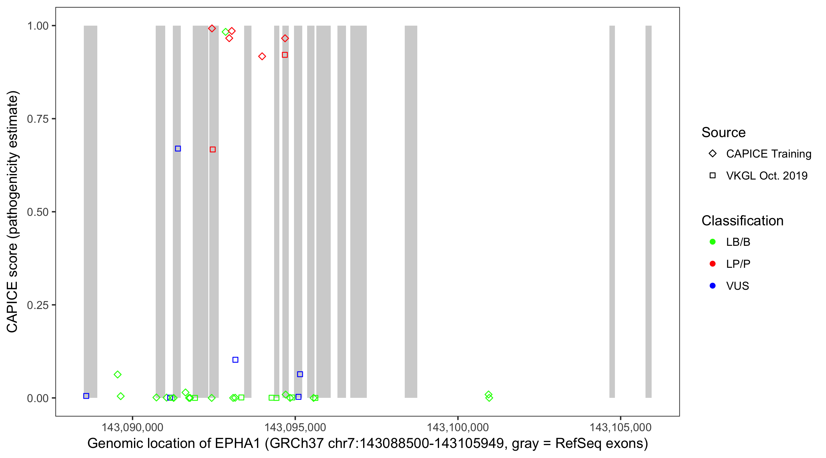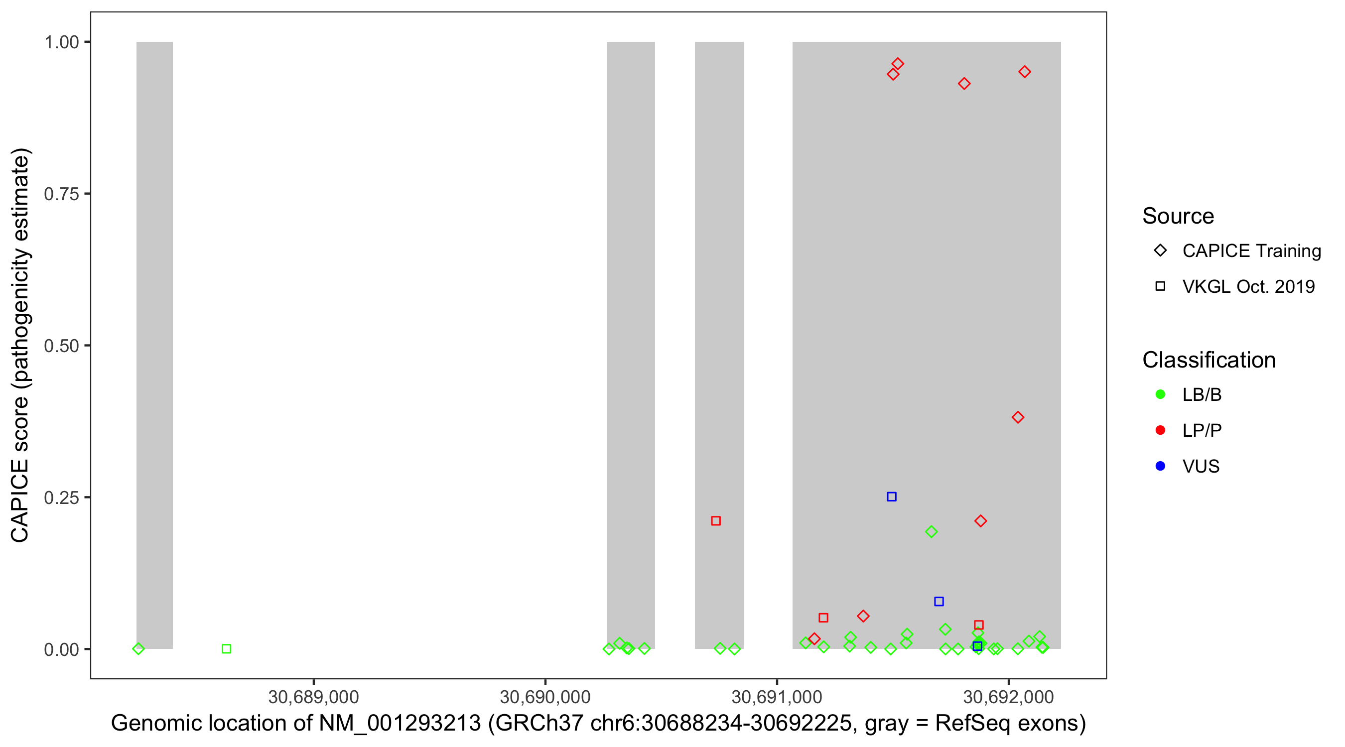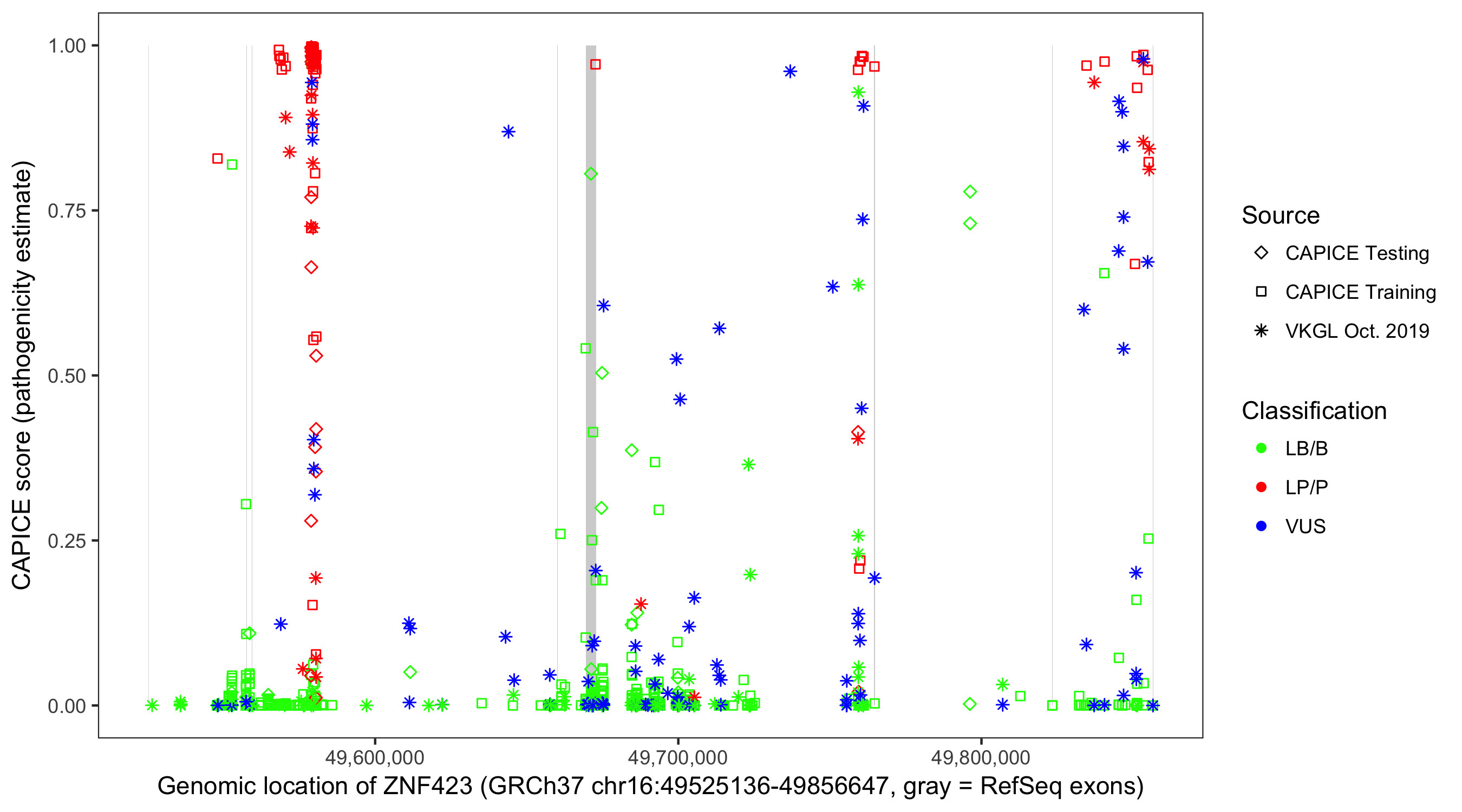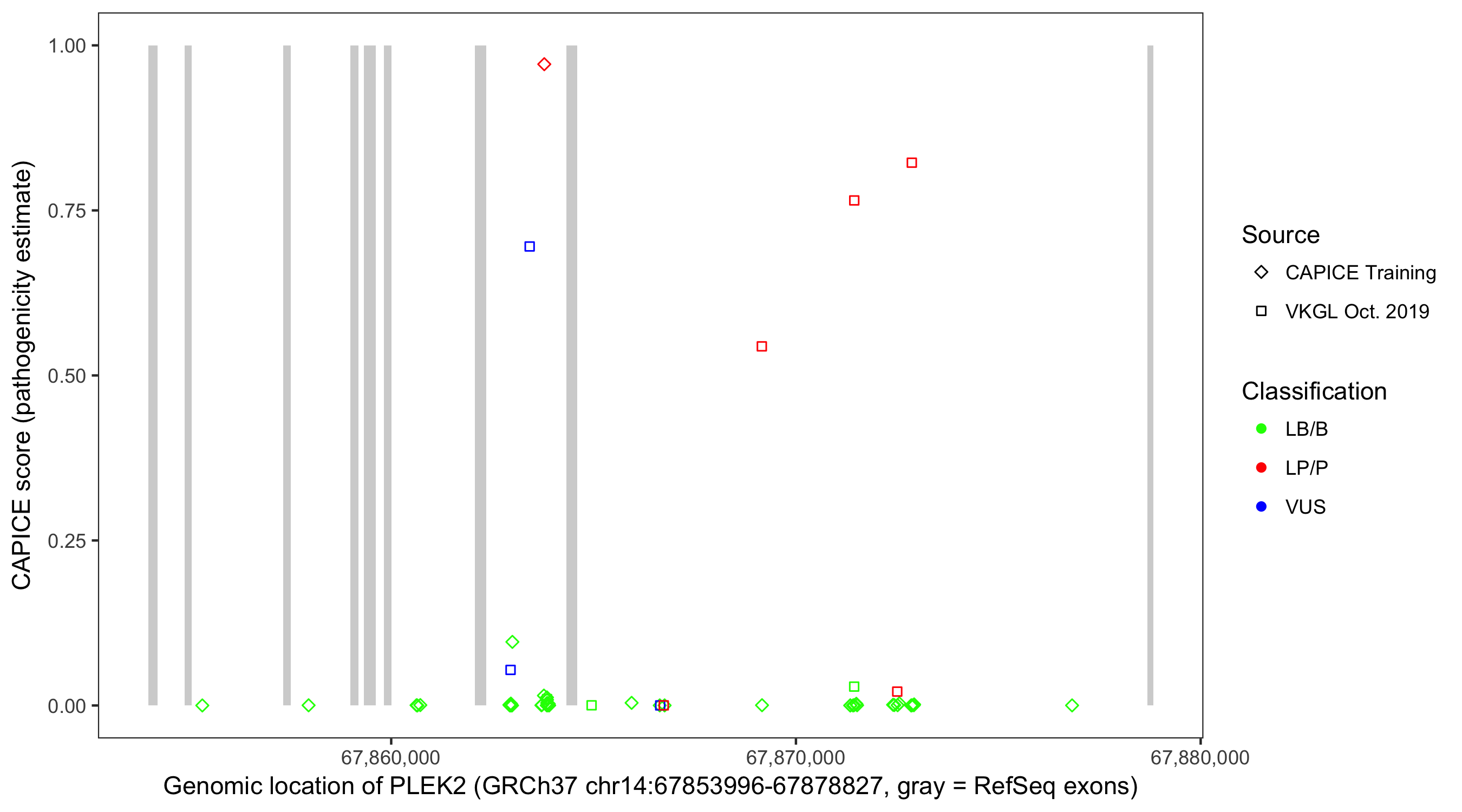 Shown are CAPICE train/test variants plus VKGL Oct 2019.