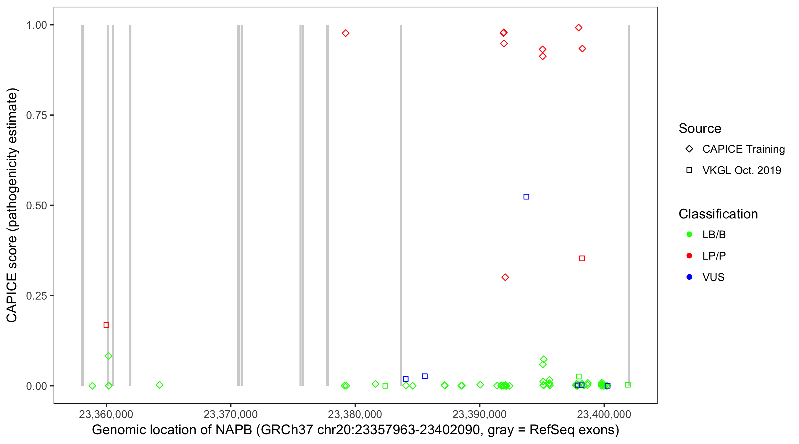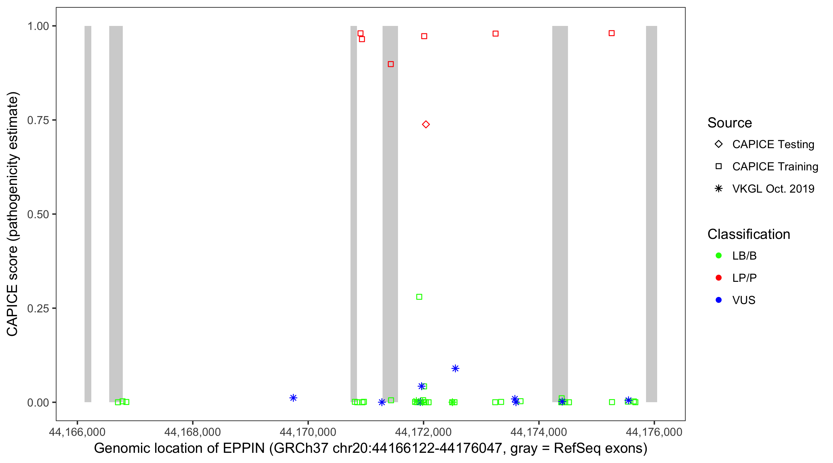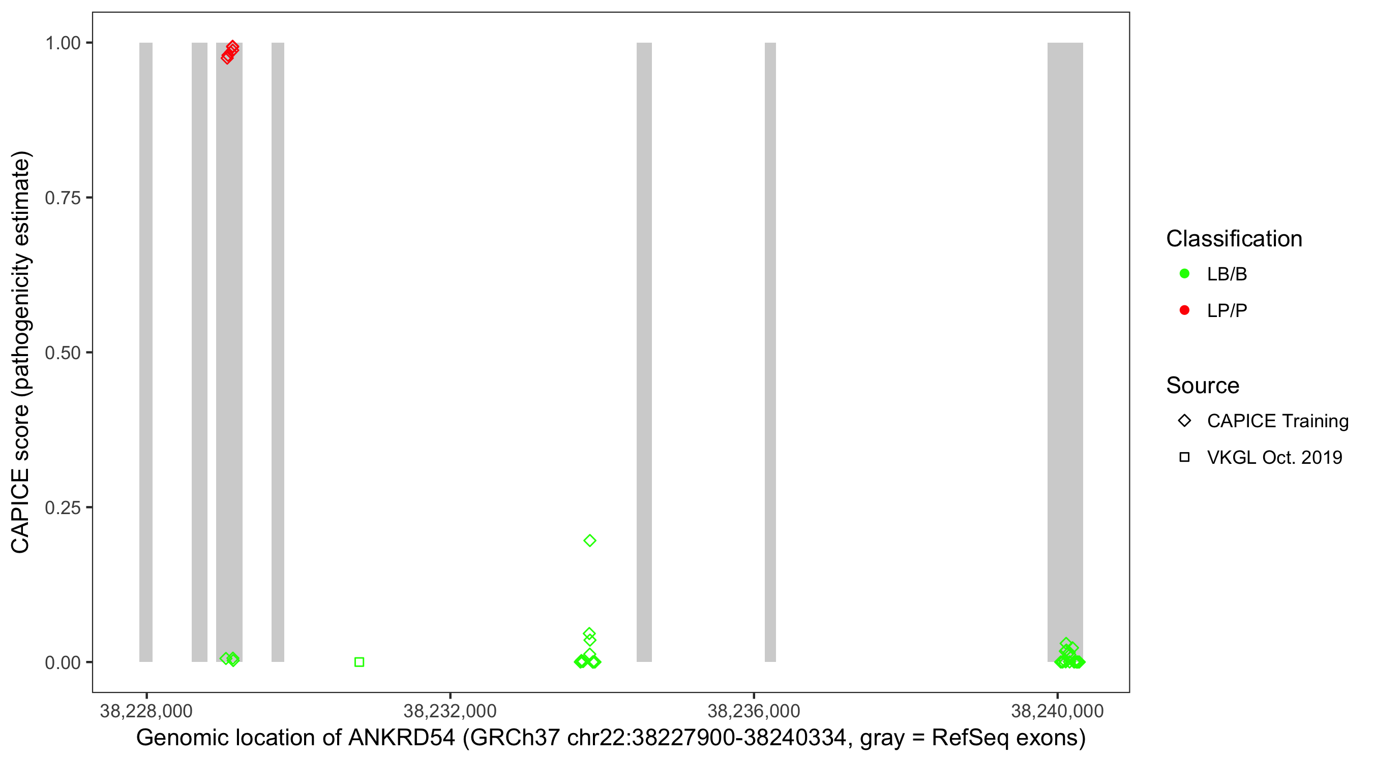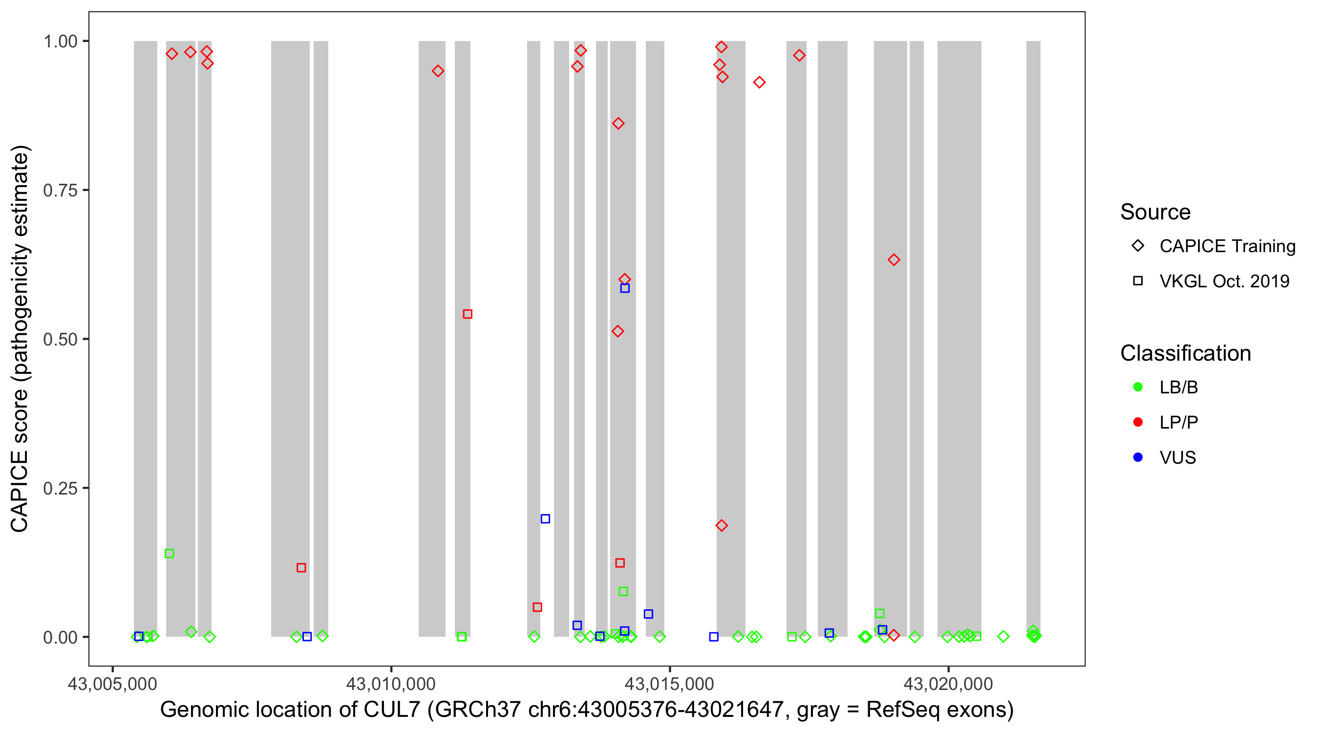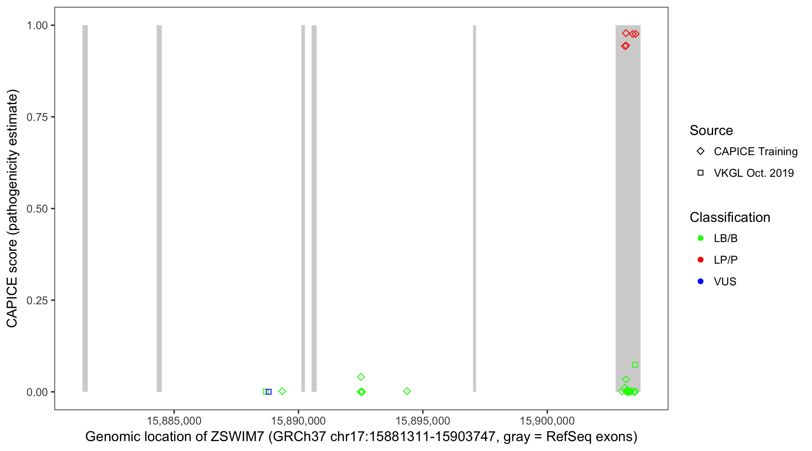 Shown are CAPICE train/test variants plus VKGL Oct 2019.