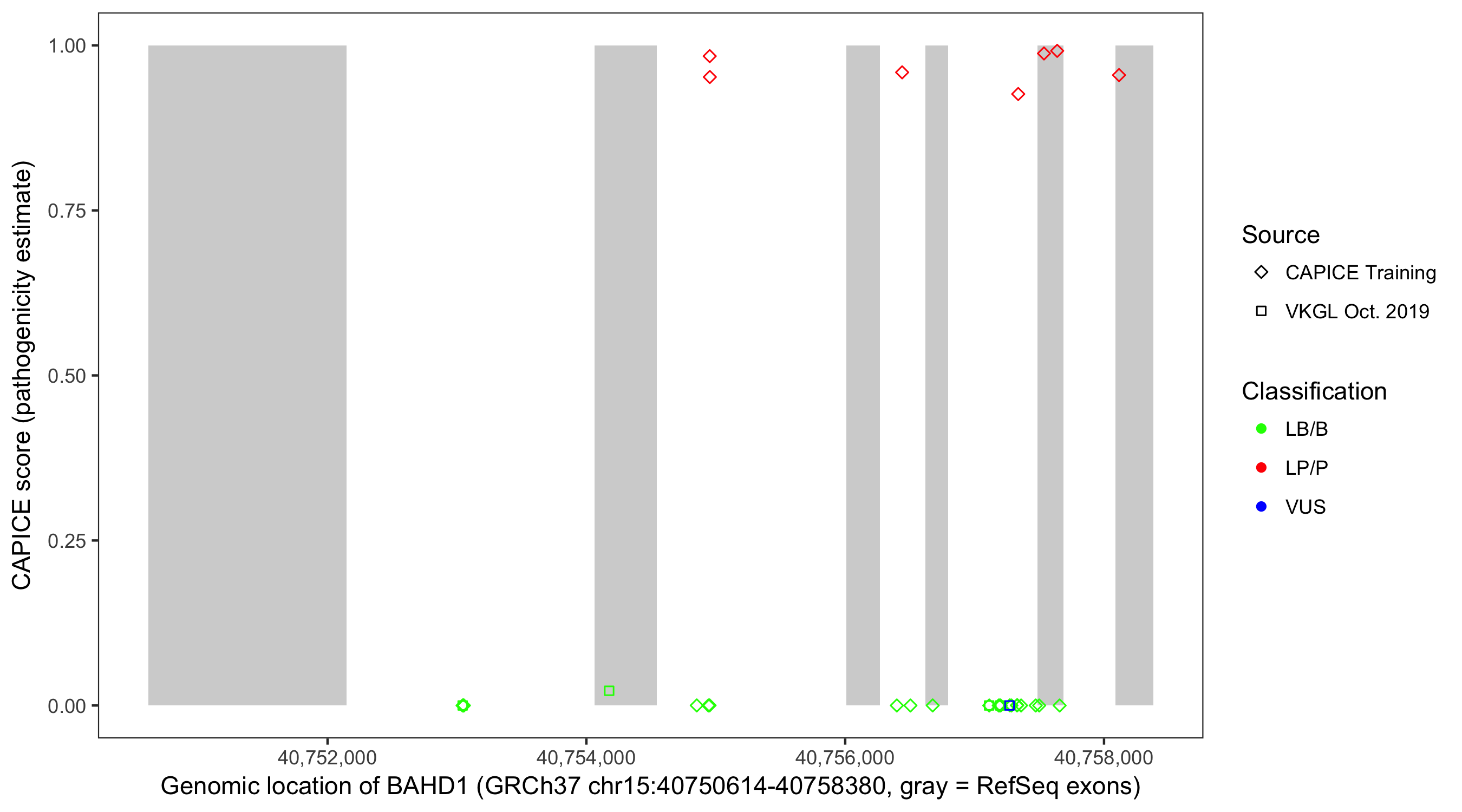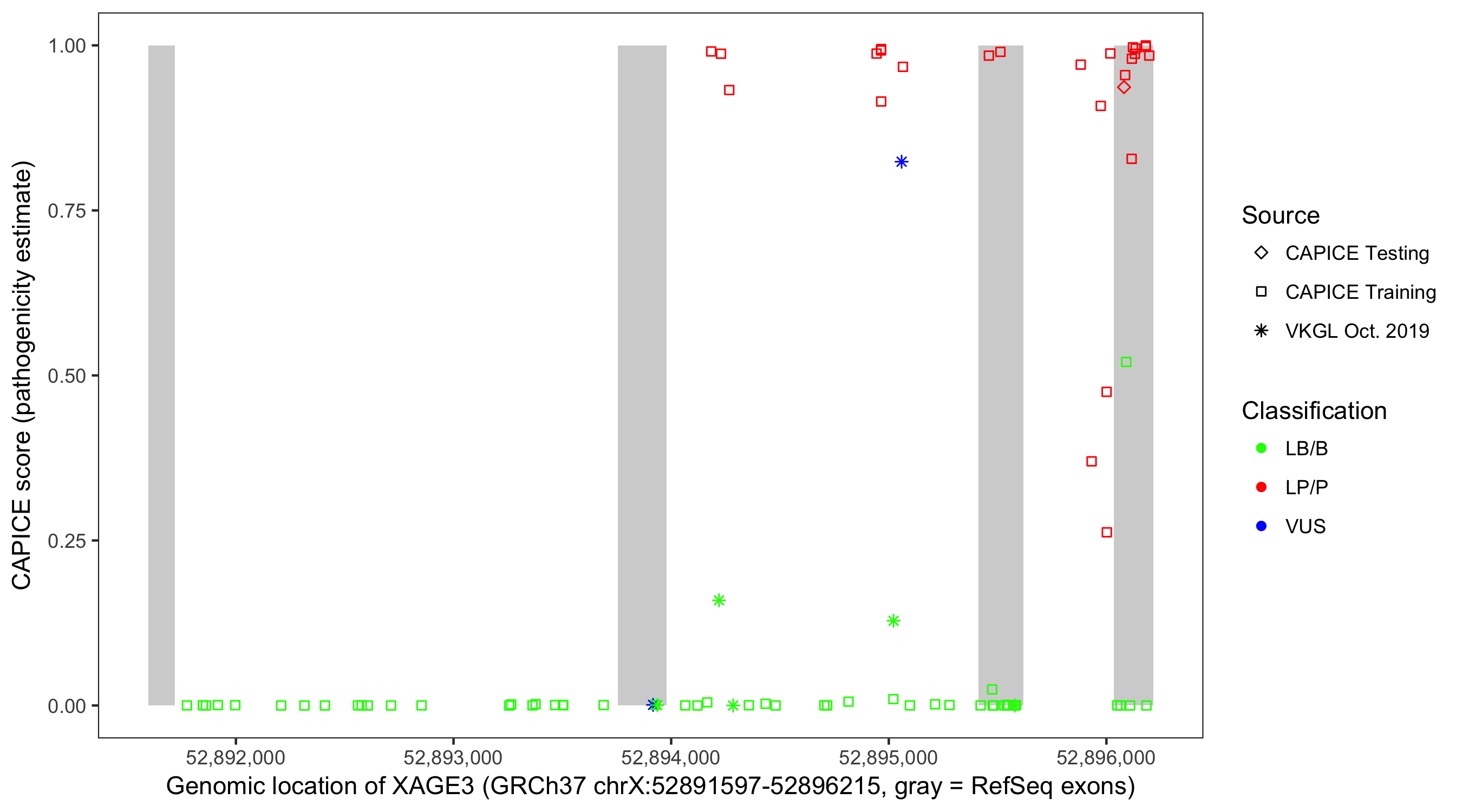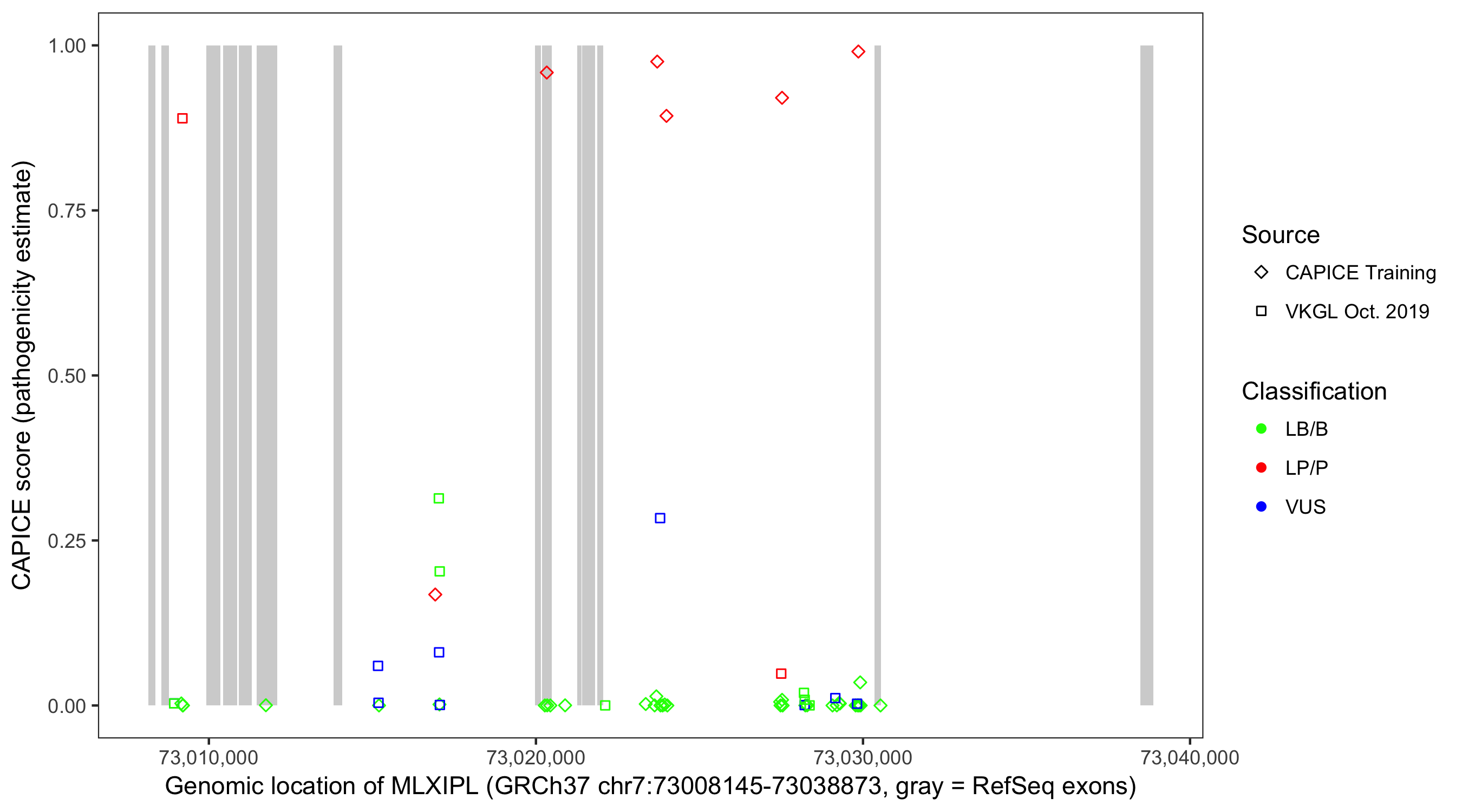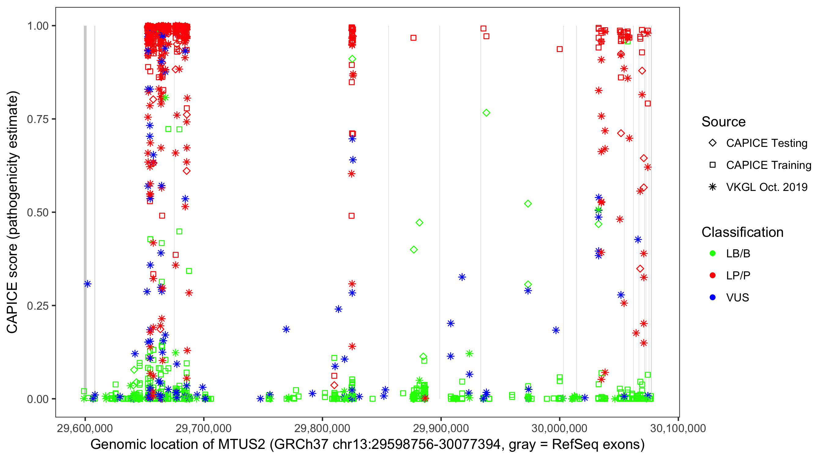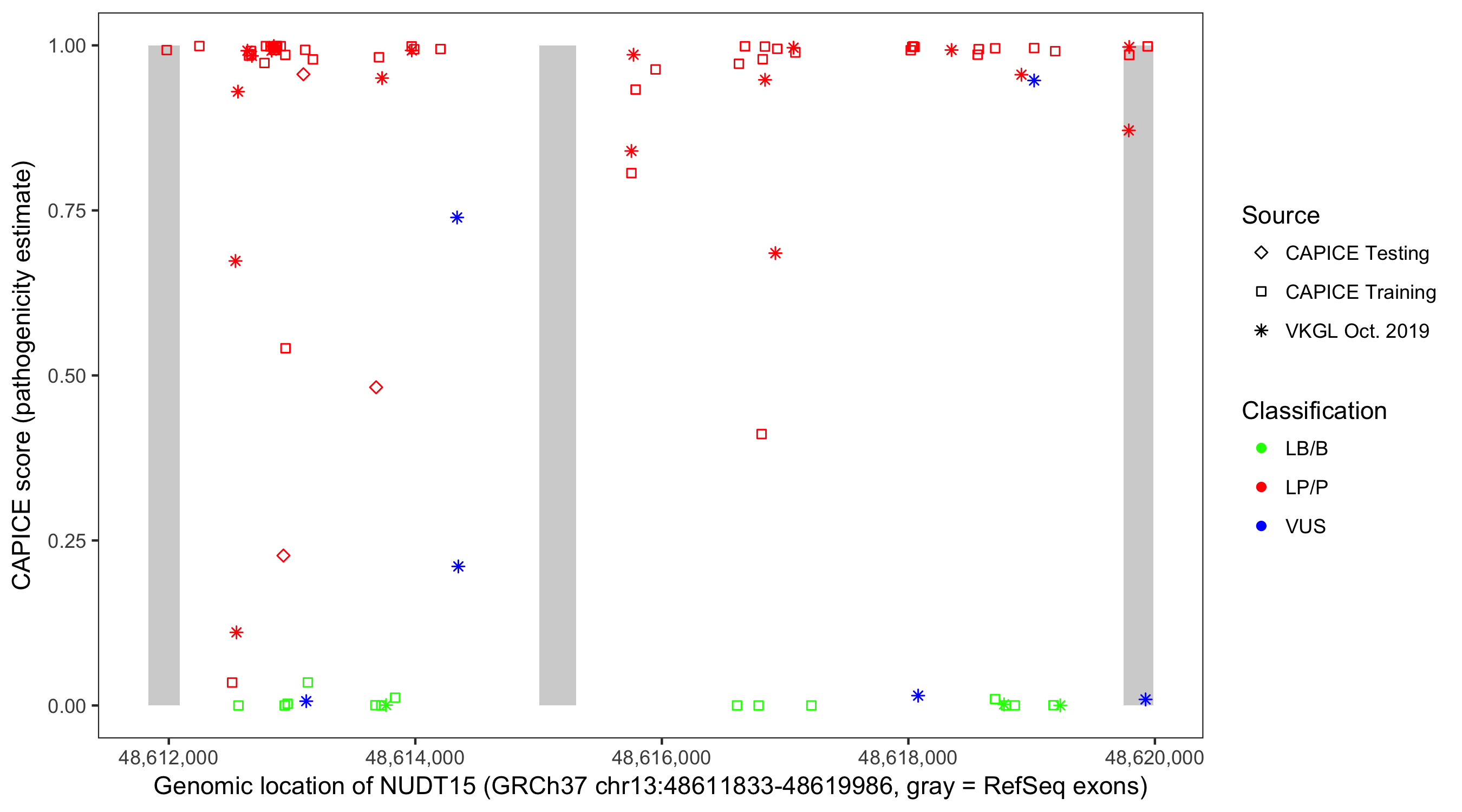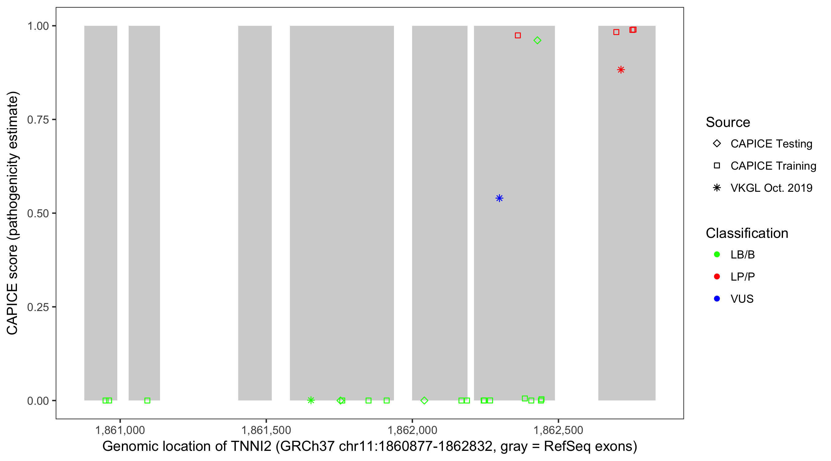 Shown are CAPICE train/test variants plus VKGL Oct 2019.