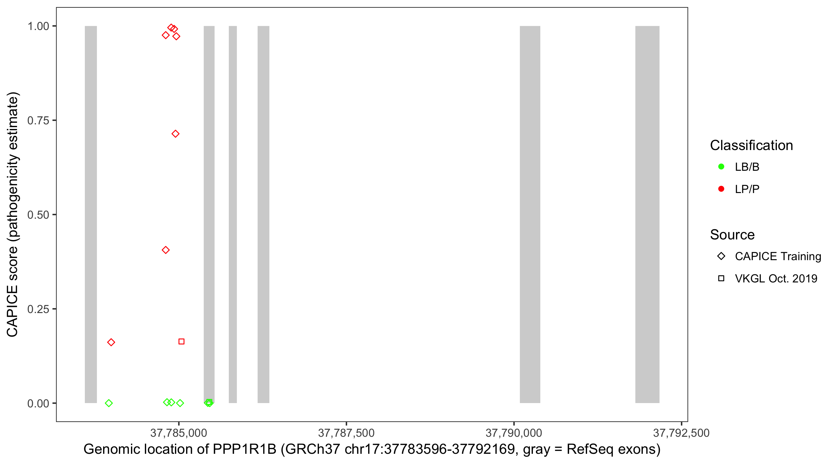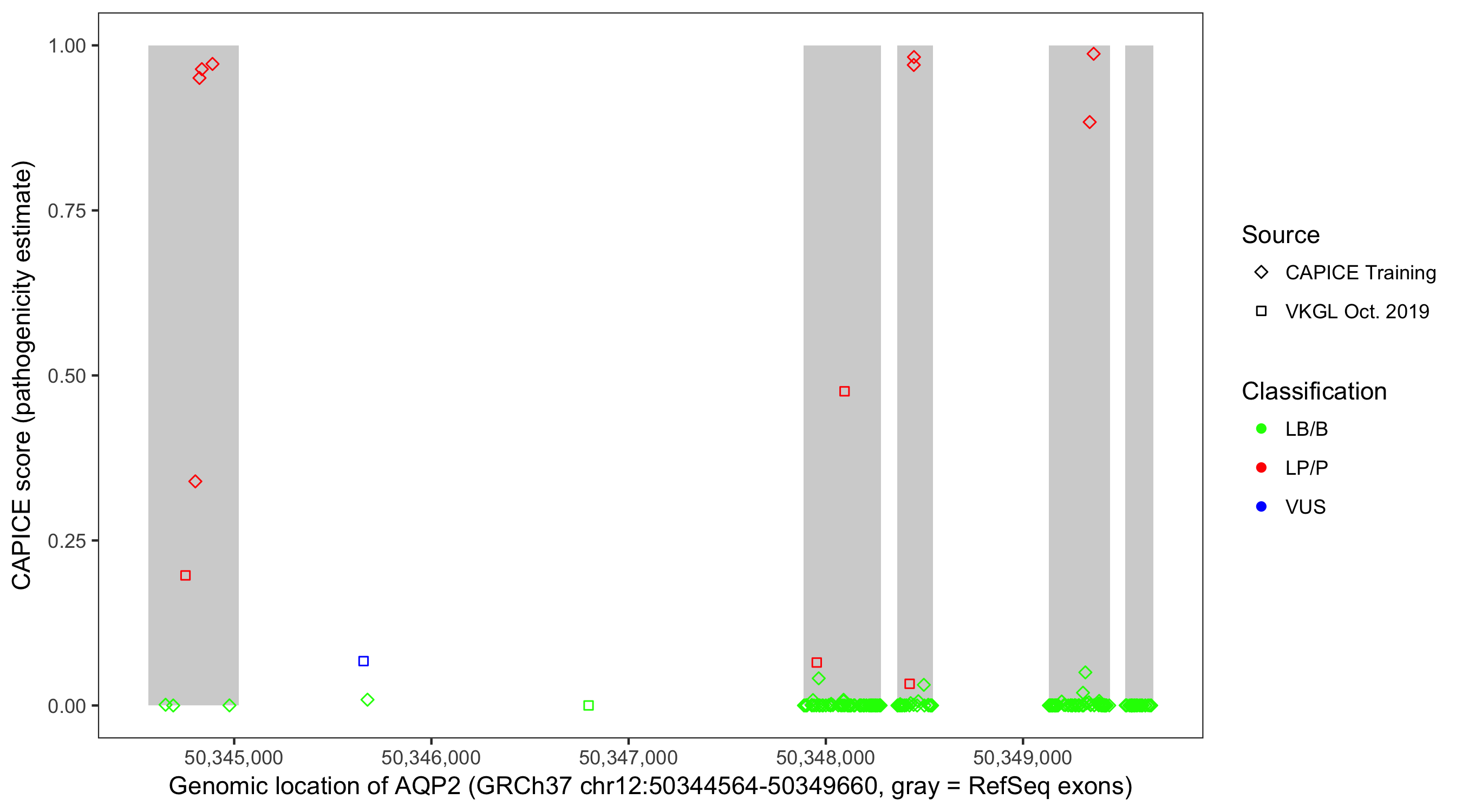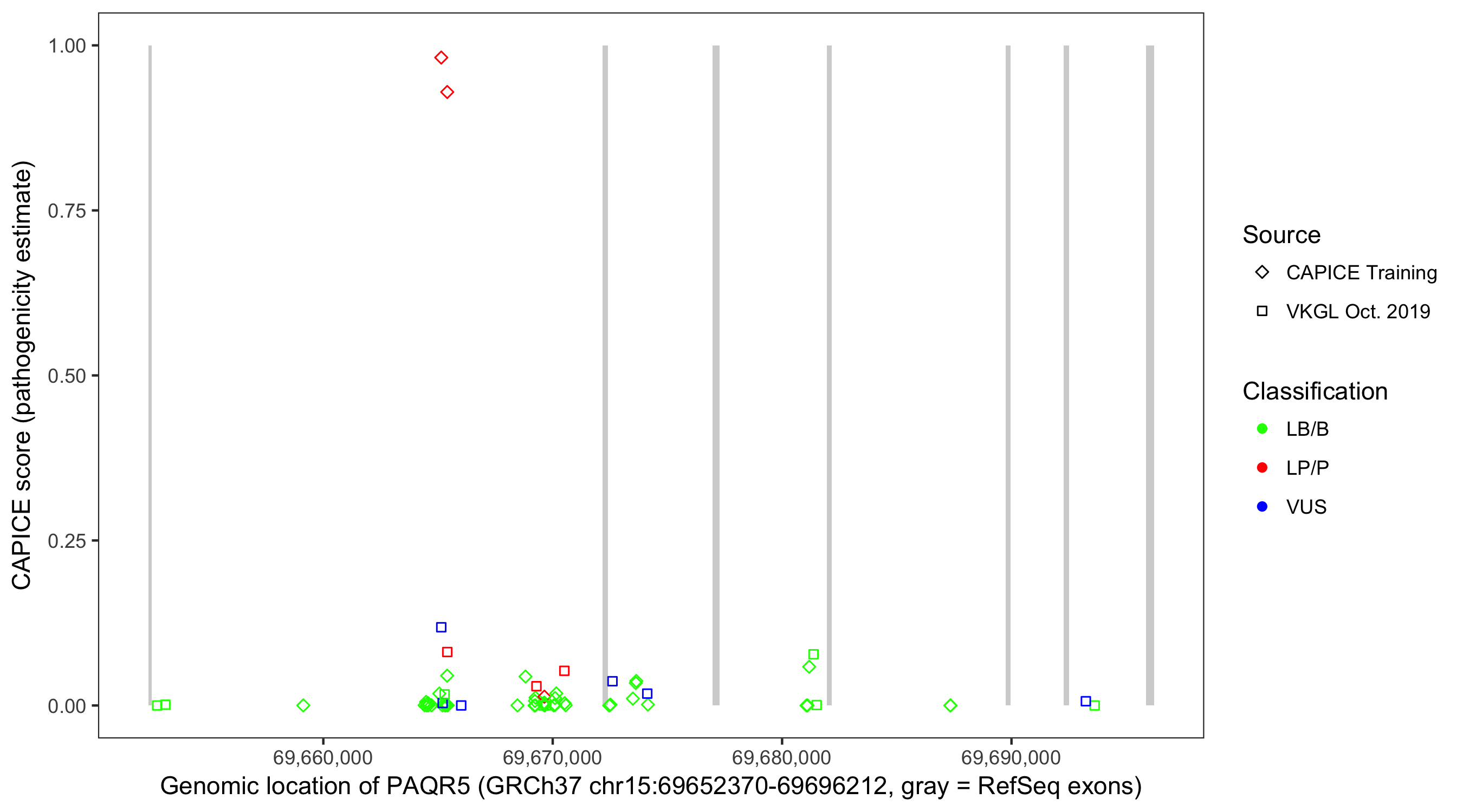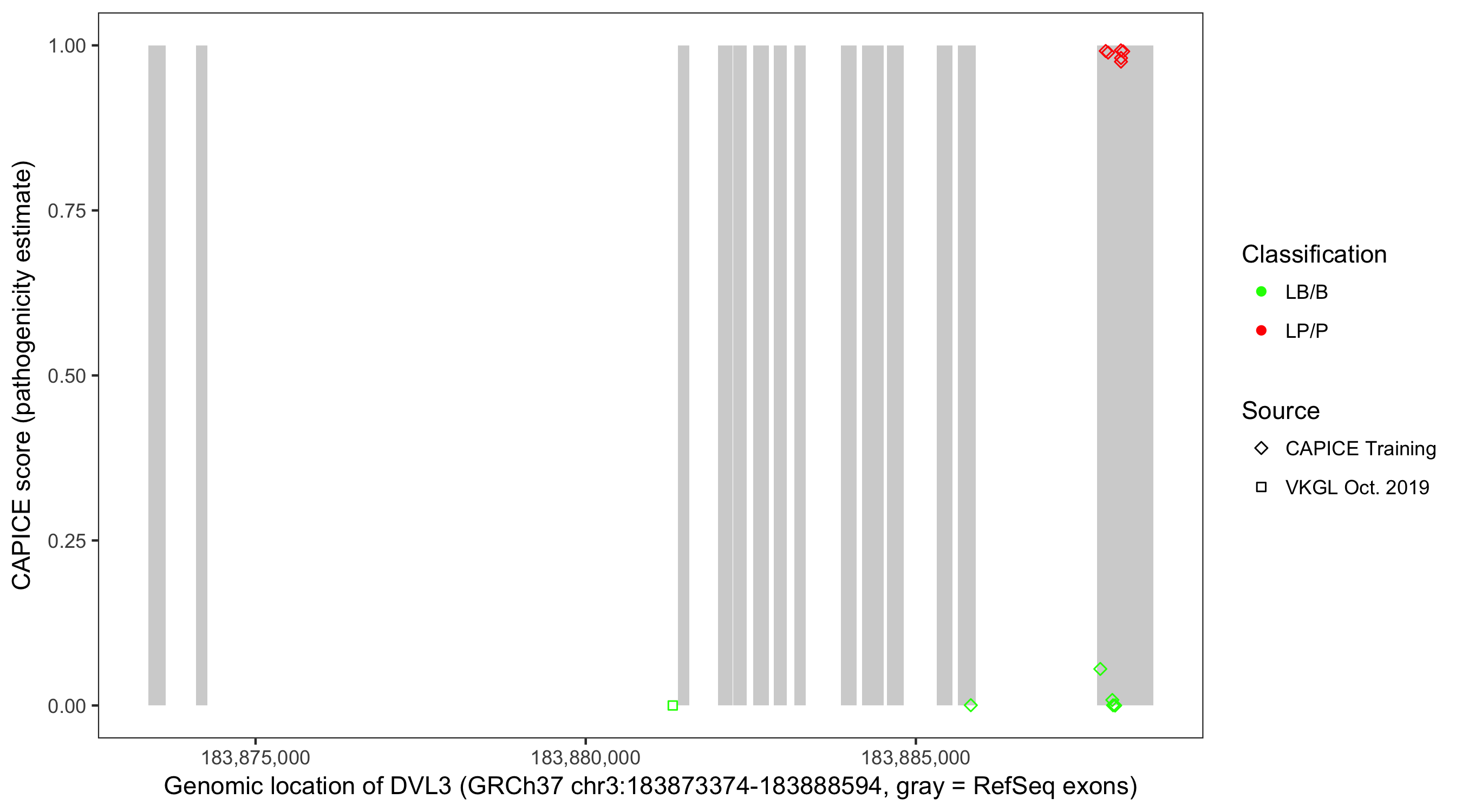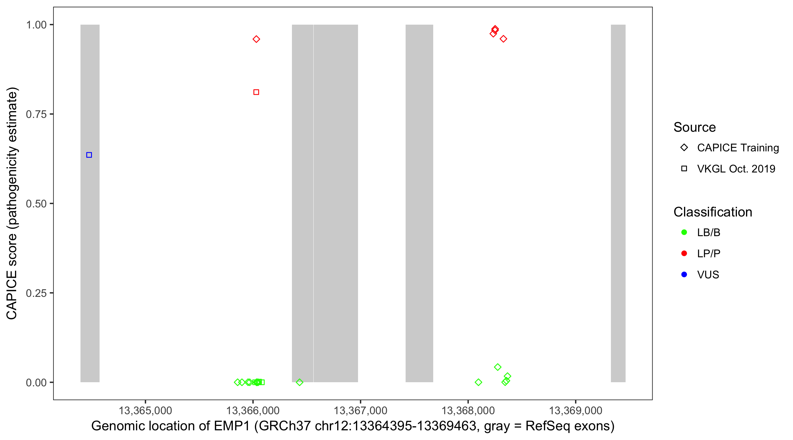 Shown are CAPICE train/test variants plus VKGL Oct 2019.