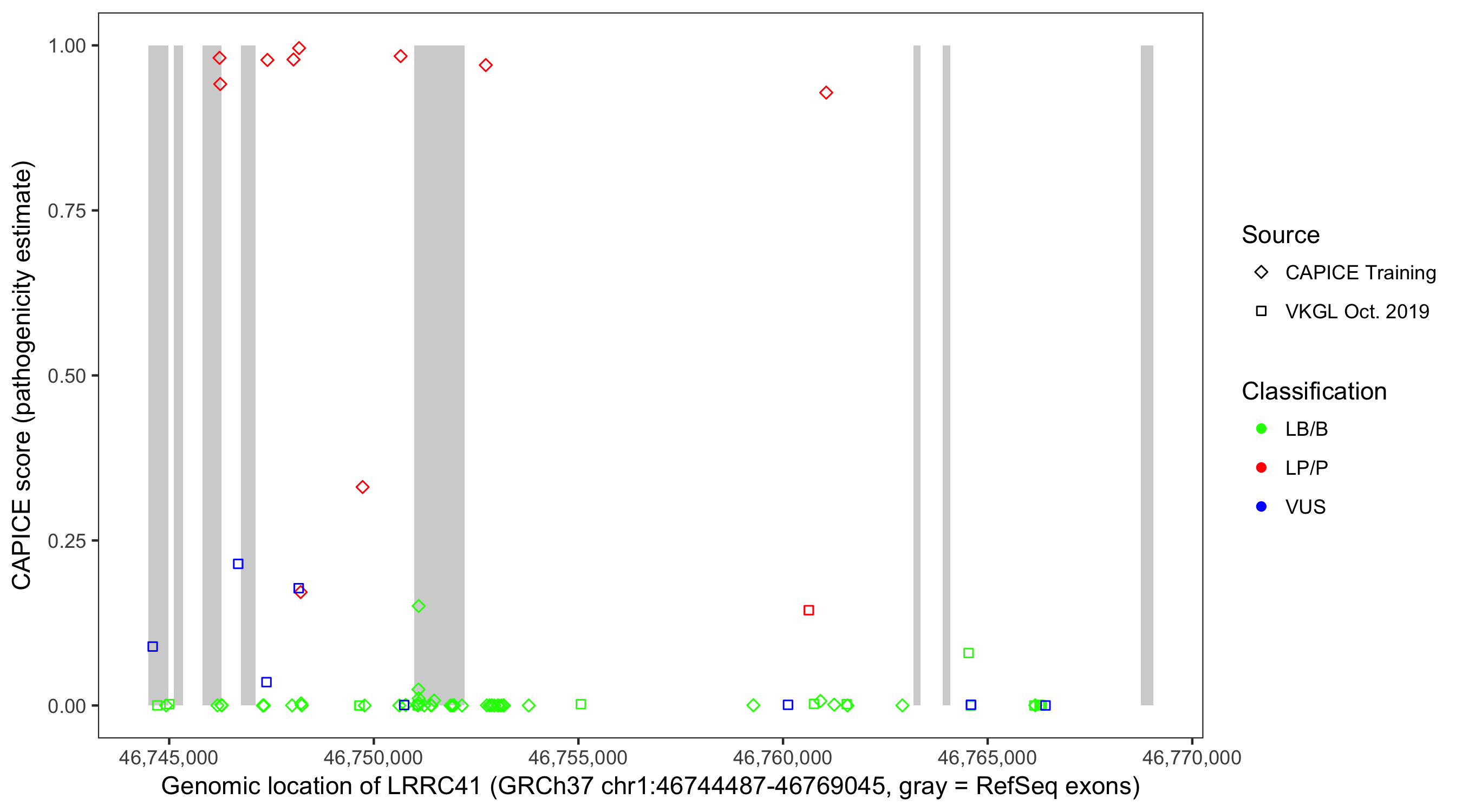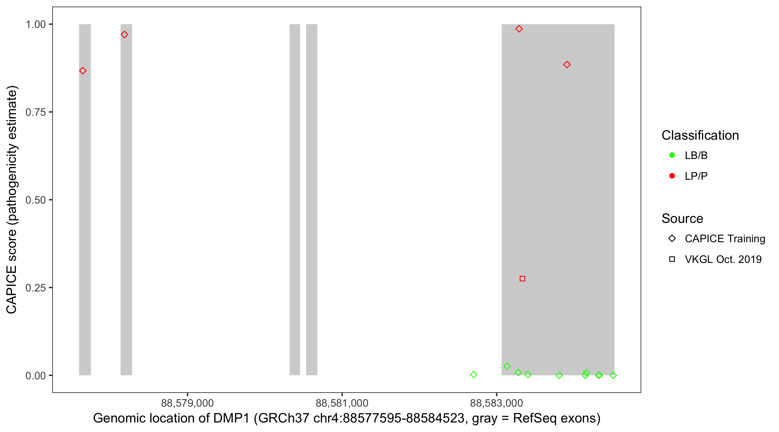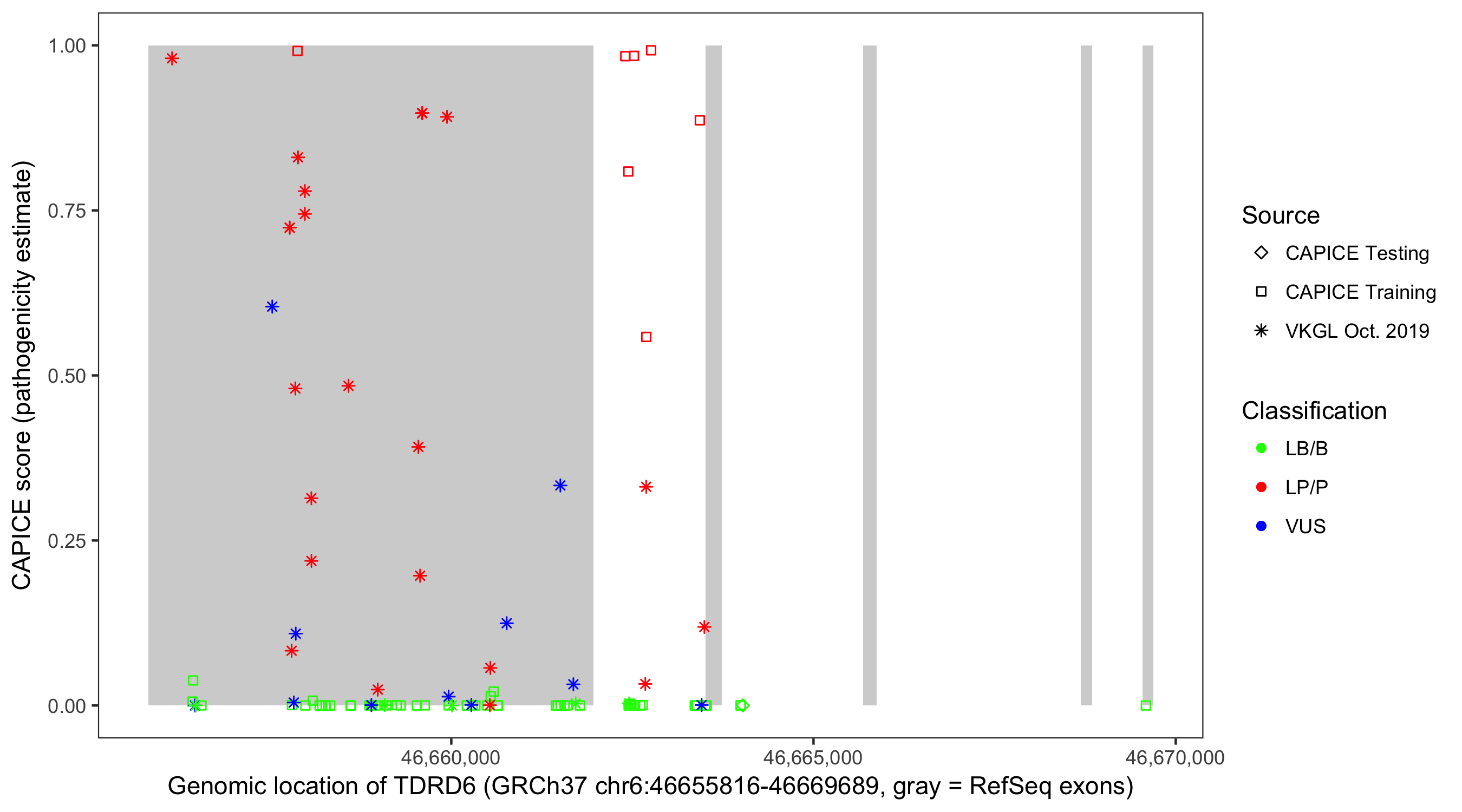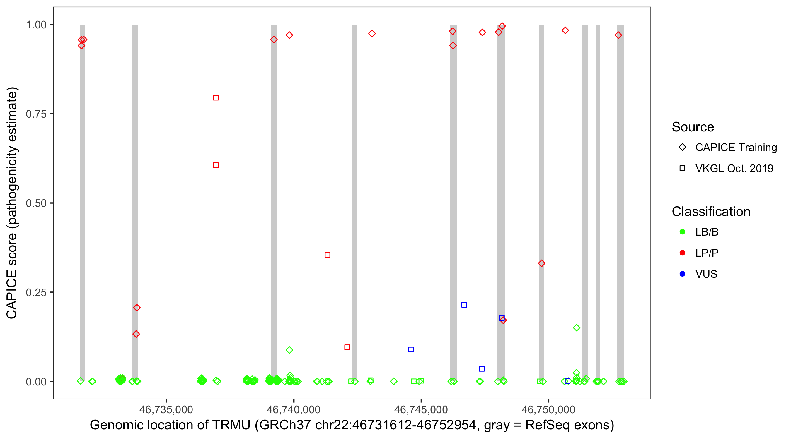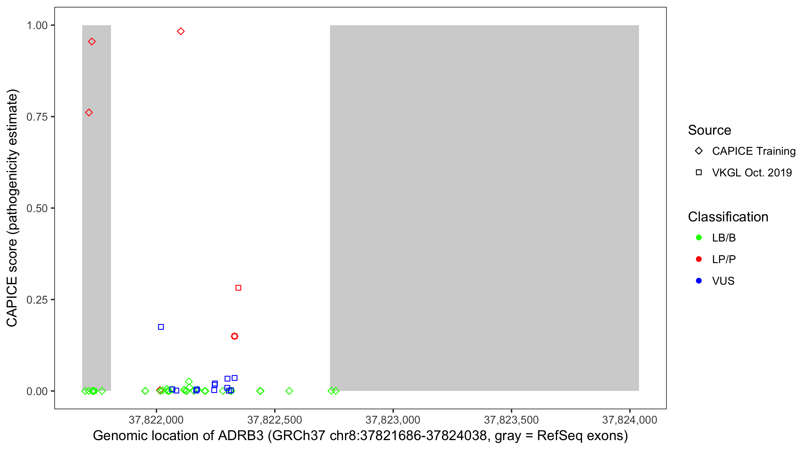 Shown are CAPICE train/test variants plus VKGL Oct 2019.